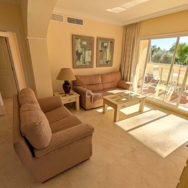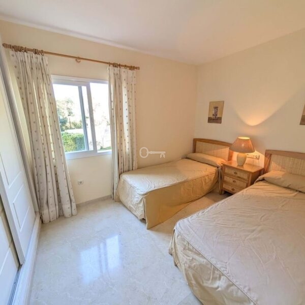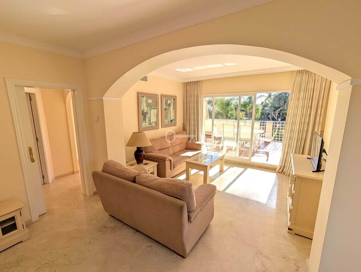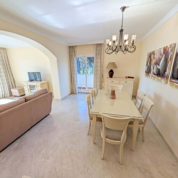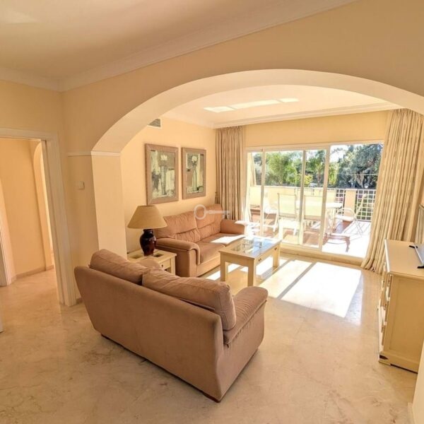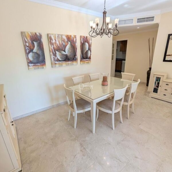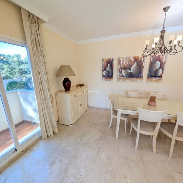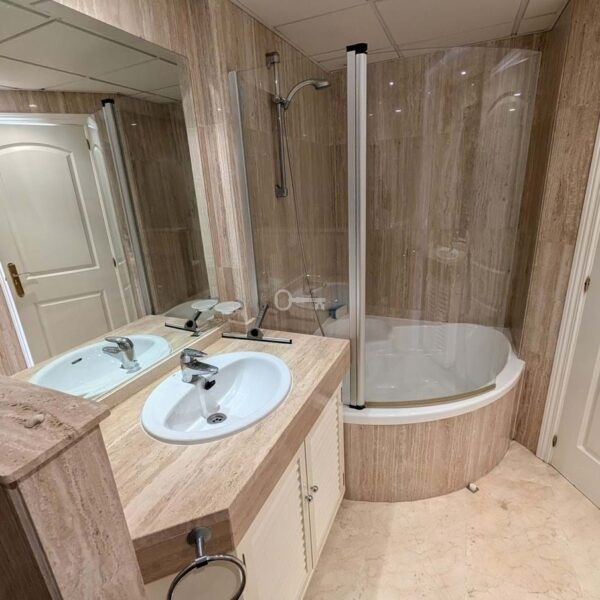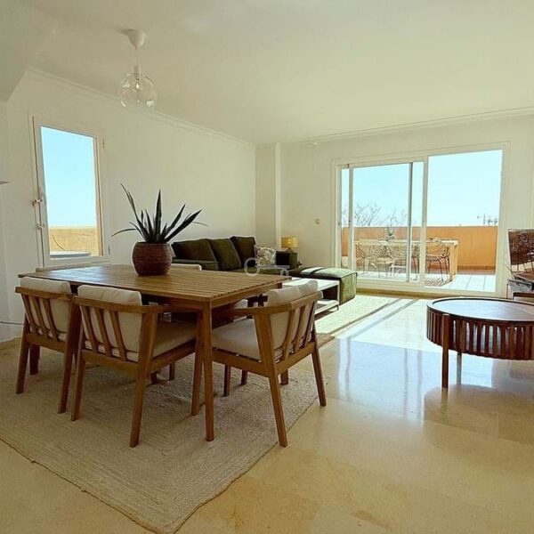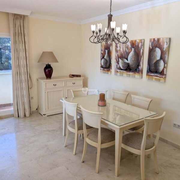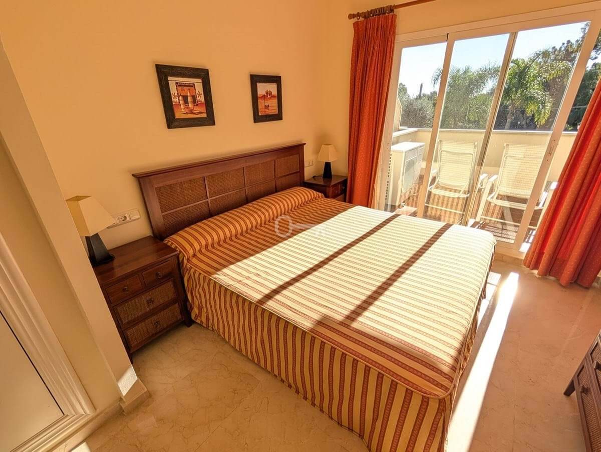 Excellent large corner first-floor 3-bedroom apartment in Jardines de Santa María Golf in the sought-after area of Elviria,Marbella.Serrounded by greenery and some of the best Golf courses on the Costa del Sol.The apartment is located within easy walking distance to shops, the beach, and various amenities,offering the perfect balance between golf,nature and Mediterranean lifestyle.This property is situated in one of the front blocks of the urbanization, offering views of the pool, cork forest, and gardens. A spacious terrace provides ample room for dining and sunbathing. The interior is modern and airy, featuring travertine marble bathrooms.A perfect oportunity to enjoy luxury living in one of Marbella’s most desirable golf locations.
