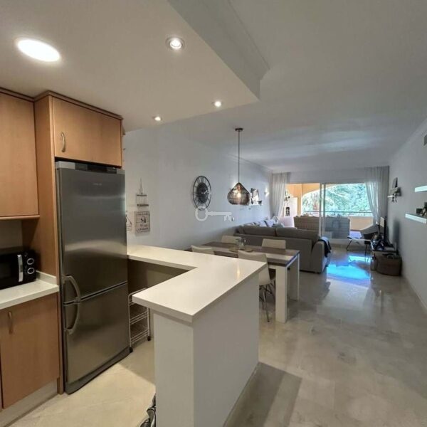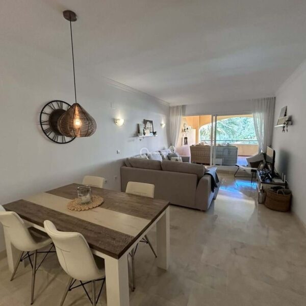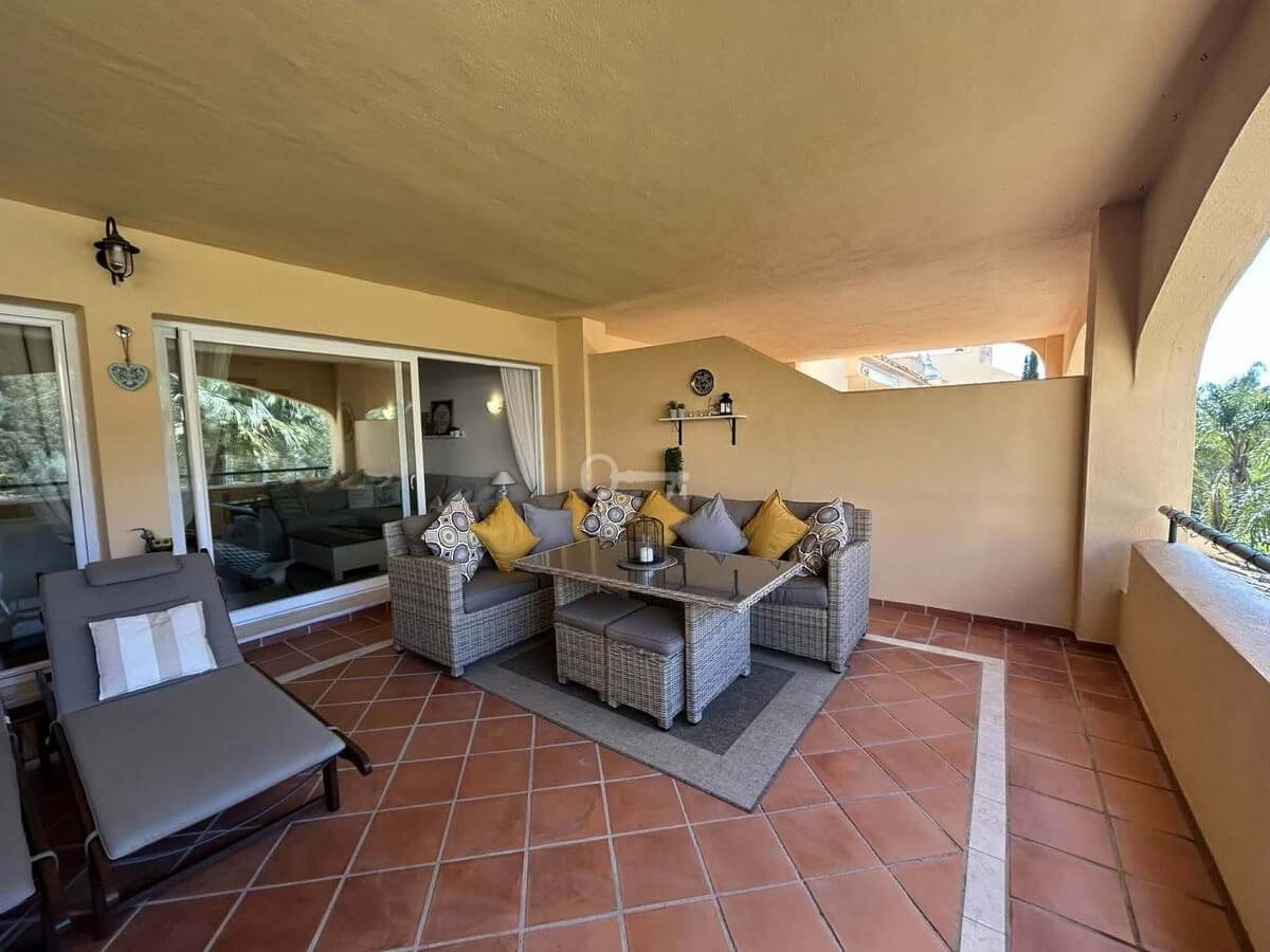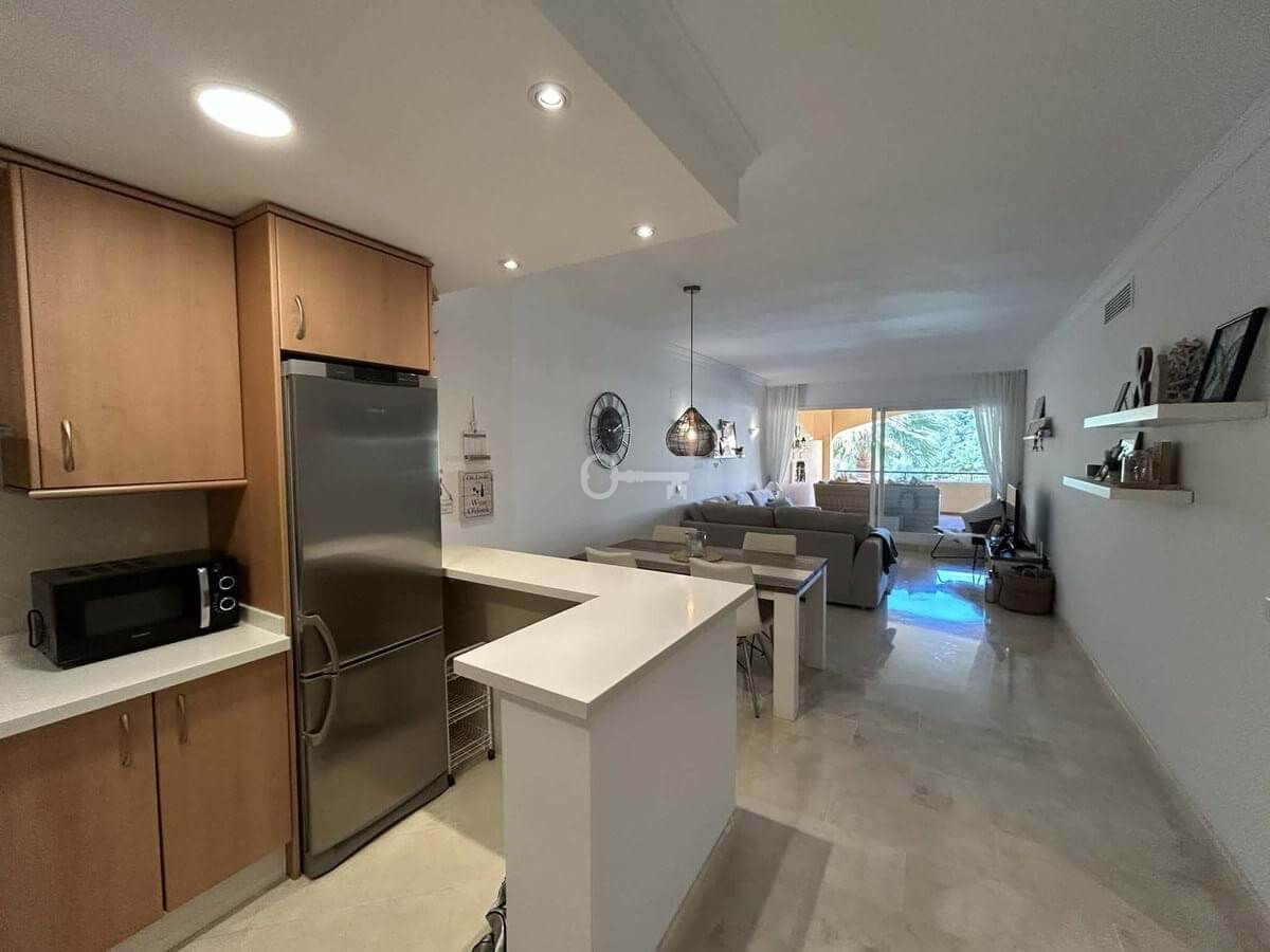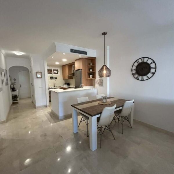 Elegant and bright west facing apartment situated in Santa Maria Village, a gated 24hour security community nested in Elviria, only minutes away from Marbella’s nicest sandy beaches. This immaculate apartment combines comfort, style and convenience and features an ample open plan living & dining room with a modern fully fitted kitchen. From the living room and master bedroom you exit out onto the large covered terrace with views to the pool, communal gardens and surroundings. This is a quiet and well kept community with landscaped gardens, 4 large swimming pools, children’s pools and is just a 5 minute drive from 2 commercial centers with shops, supermarkets, bars, restaurants and other amenities, making it the perfect blend of comfort and accessibility. The property also features A/C hot & cold, laundry room, a private dedicated parking space & storage room. The perfect holiday home or permanent residence for those seeking tranquility without sacrificing amenities and security.