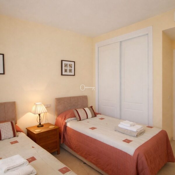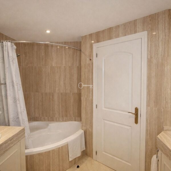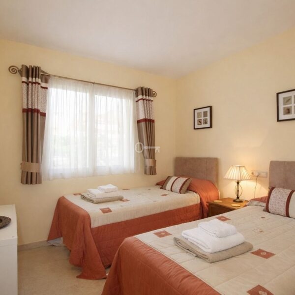 Set within the sought-after Jardines de Santa María Golf, this gated urbanisation with on-site security offers both privacy and peace of mind. The development truly lives up to its name, featuring beautifully maintained, mature landscaped gardens that create a peaceful, green oasis for residents, who also benefit from access to three well-kept swimming pools, perfectly integrated within the gardens, providing ideal spots for relaxation and leisure in a tranquil setting.