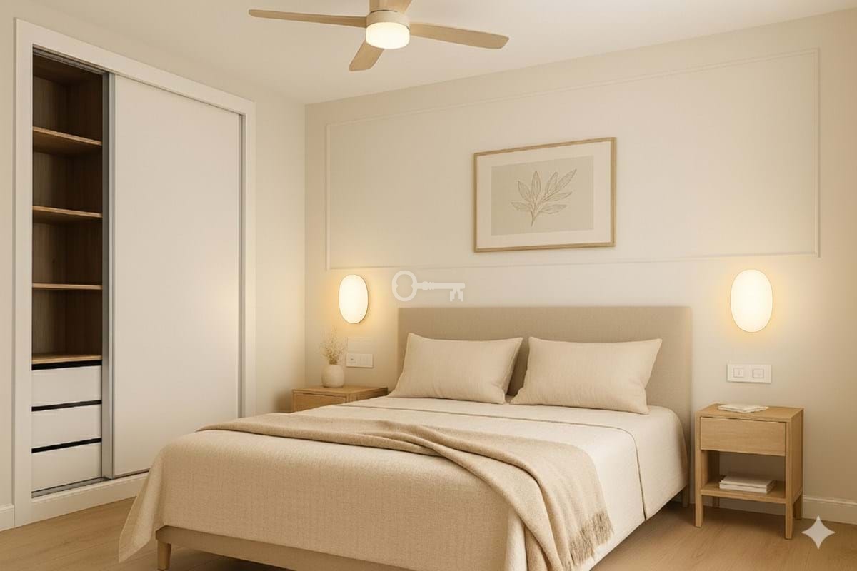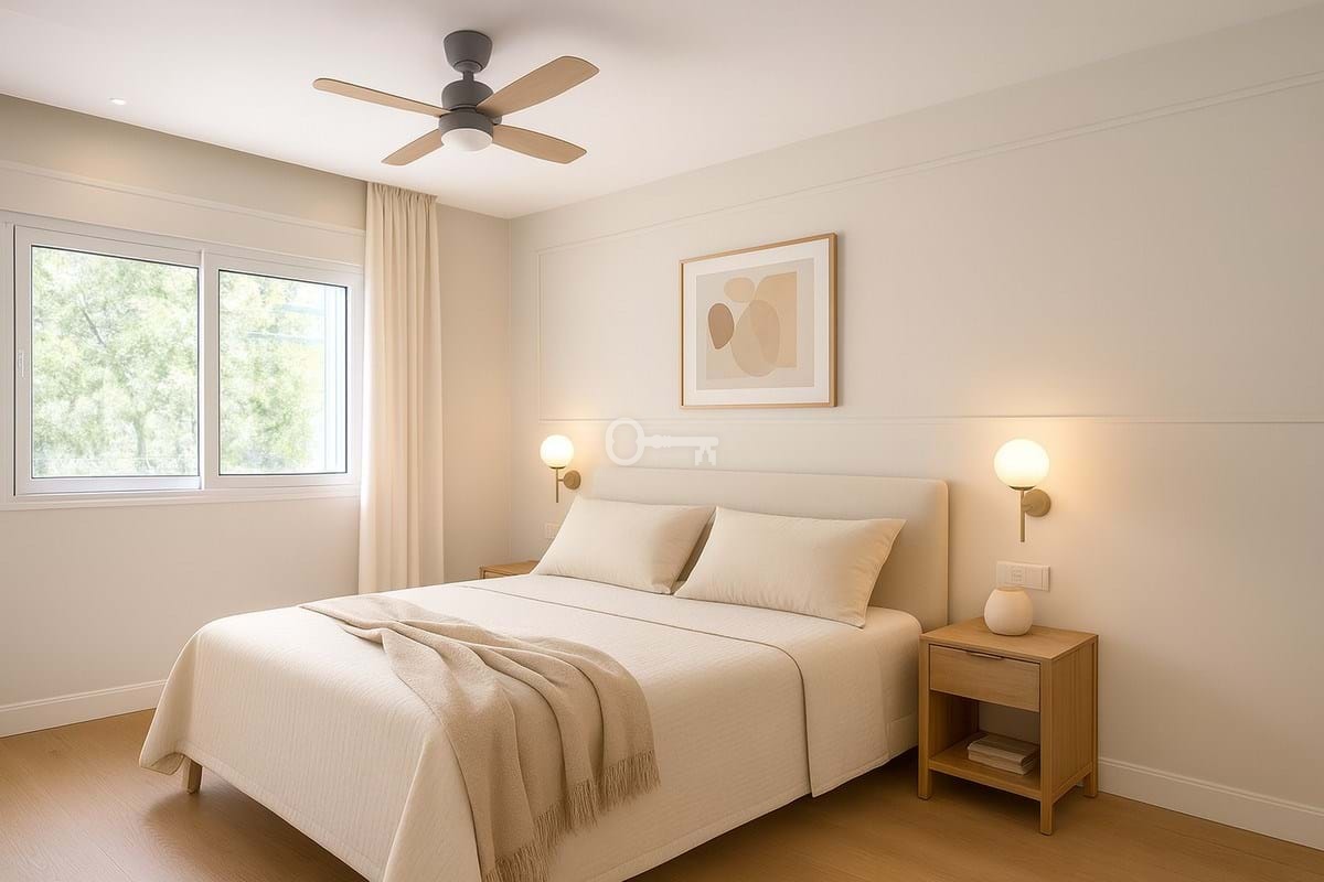 The apartment features three spacious bedrooms, all with new, lined, and illuminated built-in wardrobes, as well as ceiling fans and a powerful air conditioning system (8,000 frigories) that ensures maximum comfort throughout the year. The master bedroom has an en-suite bathroom with a modern shower and access to a balcony overlooking the interior of the complex, while the other two bedroomsone currently used as a dressing roomshare a second full bathroom. Both bathrooms stand out for their complete renovation with top-quality finishes, each featuring exterior windows that provide perfect ventilation. They include sliding glass shower screens designed to offer greater comfort and elegance.