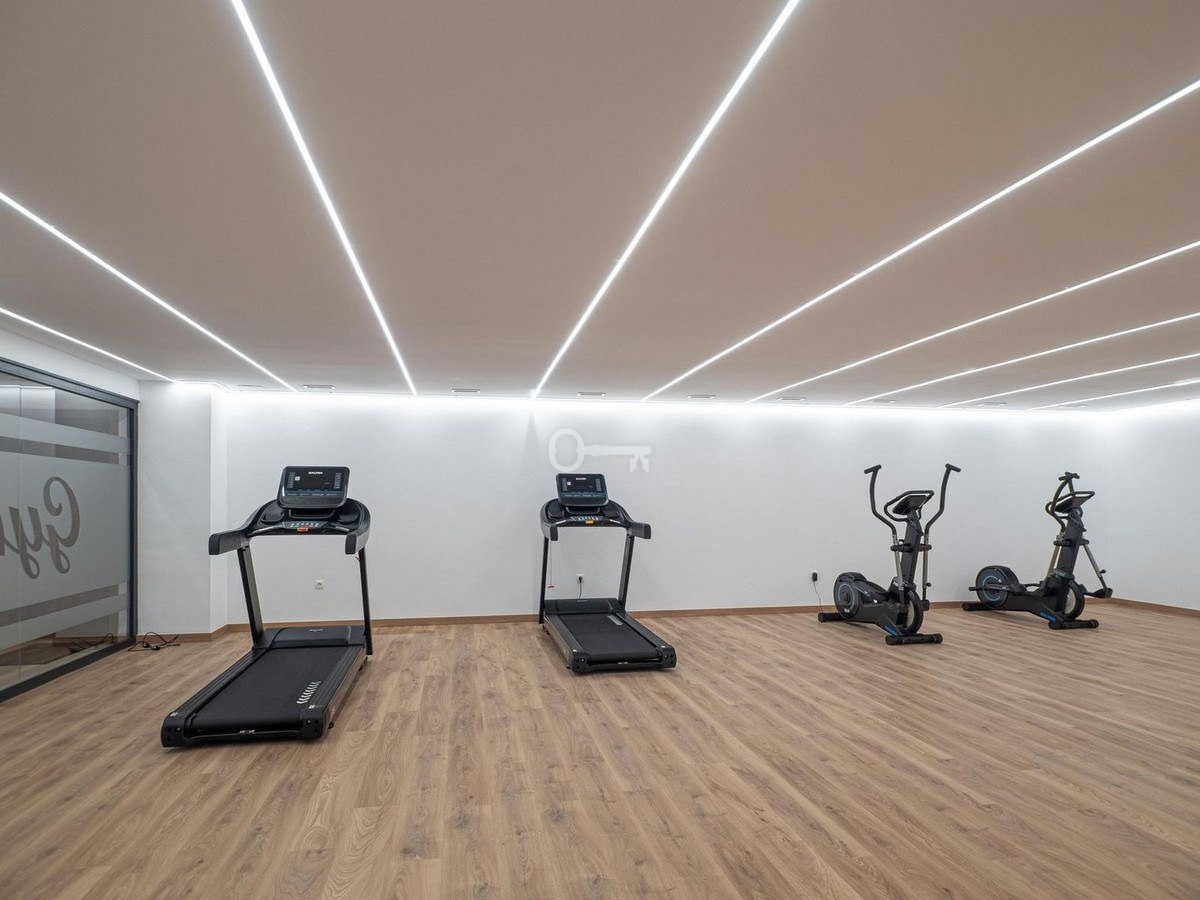 Naturally, the apartment is equipped with all modern and eco-friendly features: central hot/cold air conditioning, LED lighting, alarm system, smoke detectors, double glazing, and an energy efficiency rating of B.