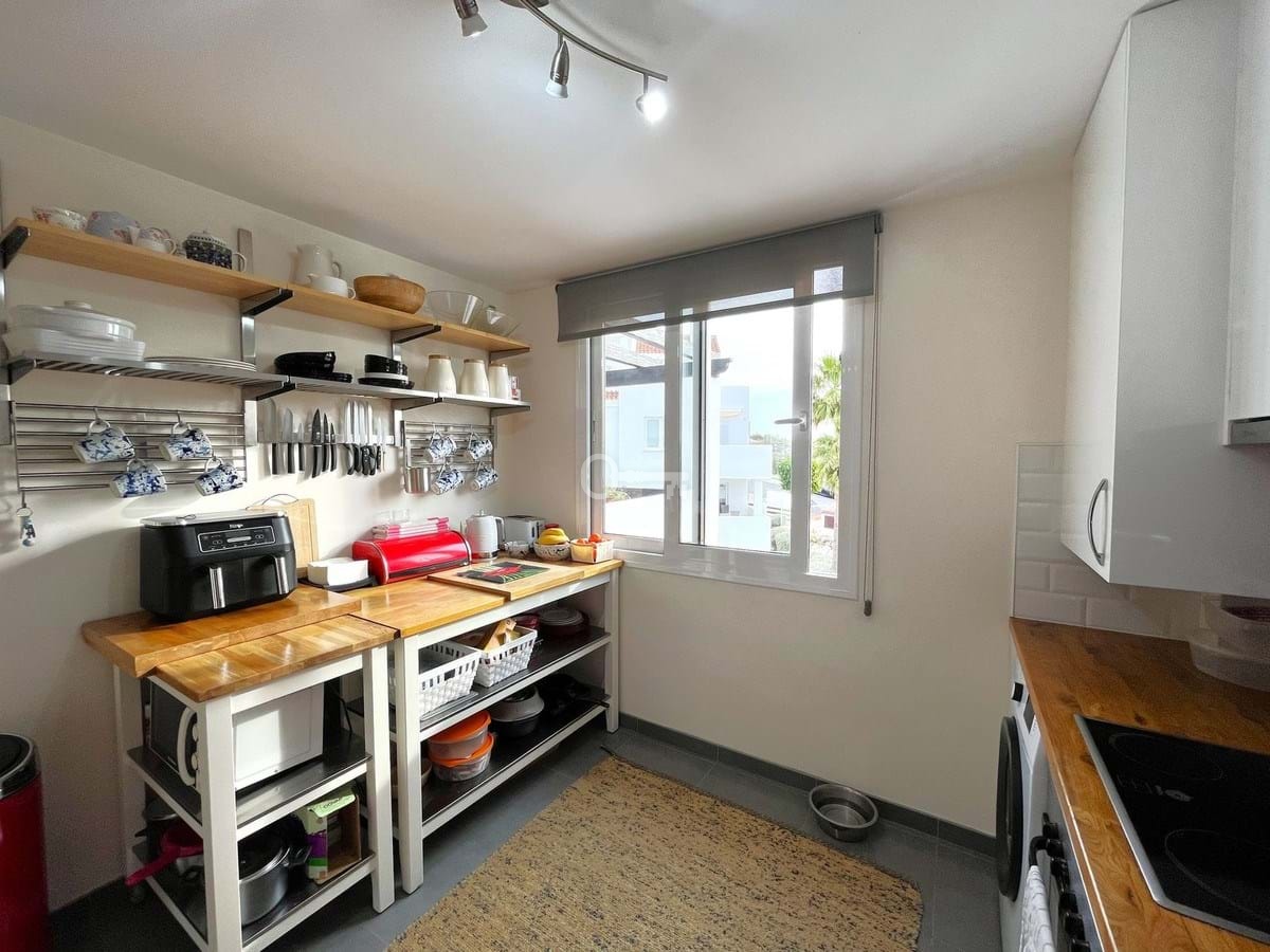 The property stands out for its large wrap-around terrace with stunning open views of the golf course and the mountains, the perfect spot to enjoy the sun and peace. Upon entering, you will find a bright and spacious living-dining room with access to a glass-enclosed terrace with sliding curtains, ideal as an additional living area. It also features a fully renovated and equipped kitchen with high-quality finishes.
