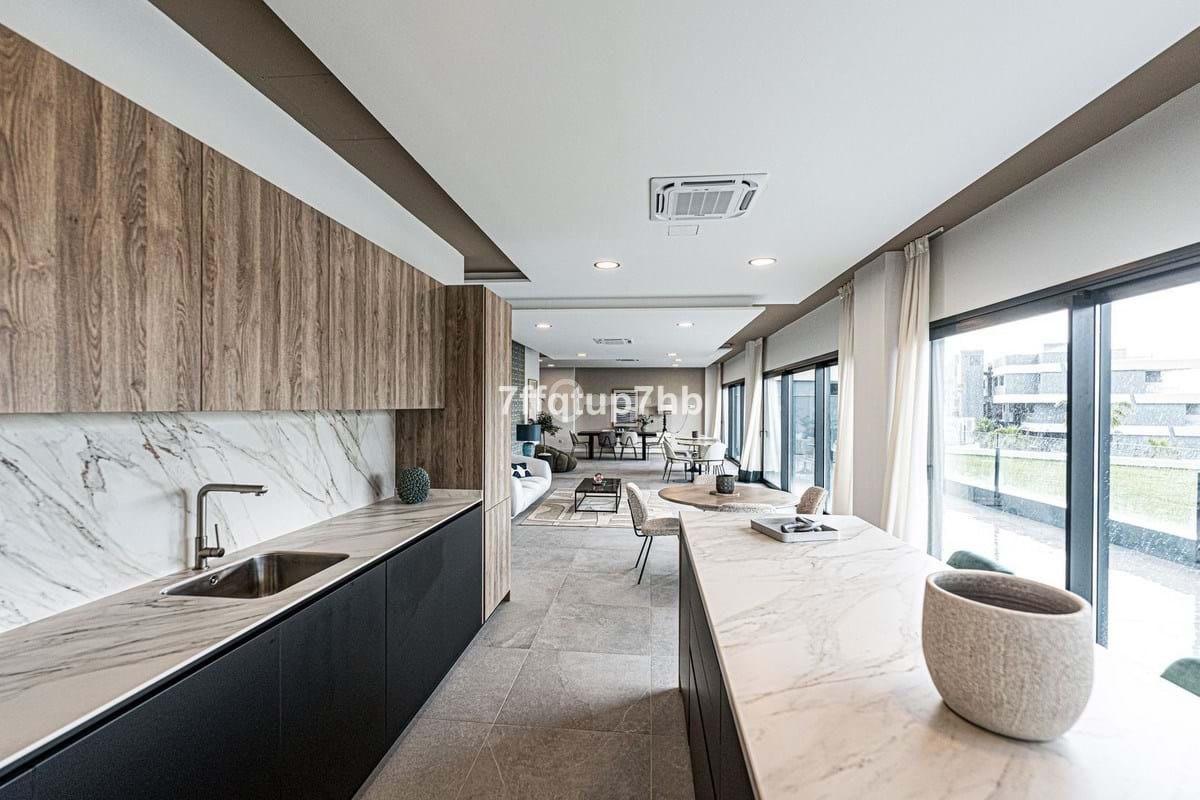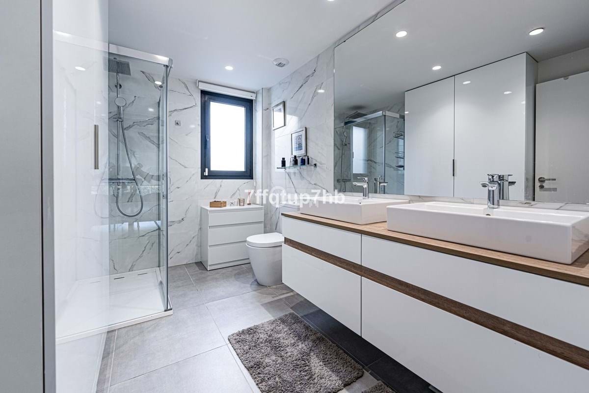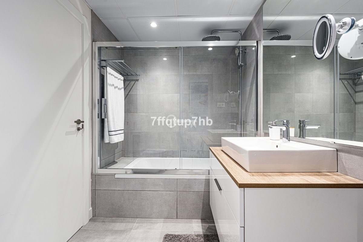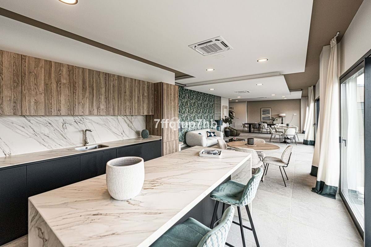 This 3-bedroom apartment features an open-plan design, seamlessly integrating a modern, fully equipped kitchen with the living area. The space opens onto a spectacular south-facing terrace and a private 80 m² garden, perfect for basking in the endless sunlight that characterizes the Costa del Sol.