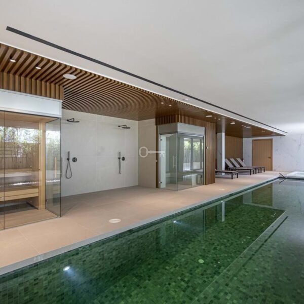 The expansive 102m² terrace is a standout feature, offering both covered and uncovered areas to enjoy the Mediterranean climate. Residents can indulge in a private pool, a jacuzzi, and a sauna, all complemented by access to a communal indoor pool and a fully equipped gym. The gated community provides 24-hour security with surveillance cameras and video entrance systems, ensuring peace of mind. Modern conveniences such as electric blinds, fibre-optic internet, satellite TV, and fitted wardrobes further enhance the living experience.