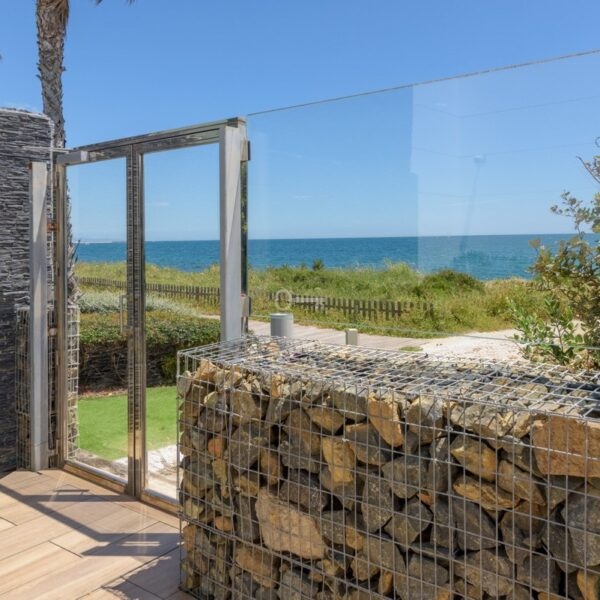 Additional features include underfloor heating, air conditioning, multiple parking spaces, private plunge pool, full spa facilities on site, outdoor and indoor swimming pools, and a superlative frontline beach location.