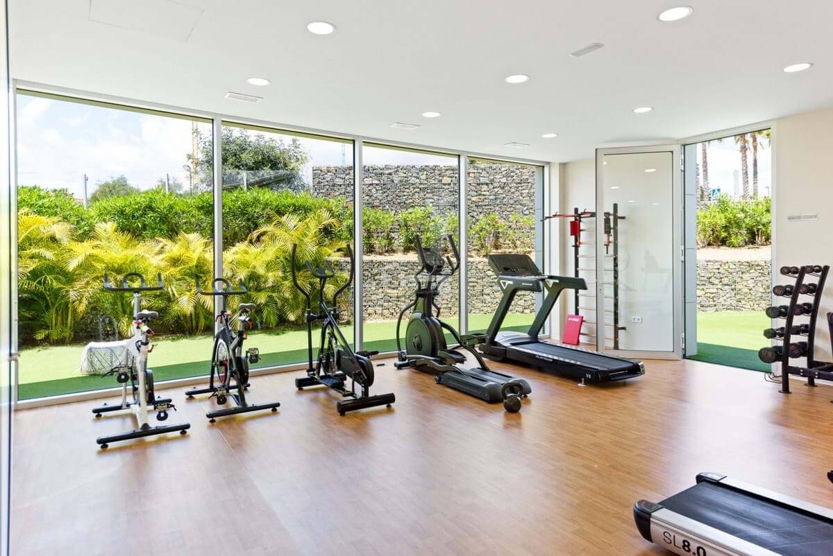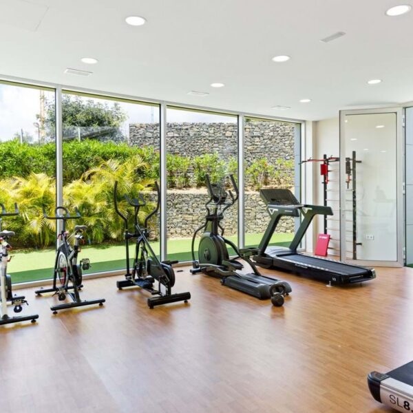 Accommodation comprises three bedrooms, including a principal suite with direct terrace access and sea views. Bathrooms are finished to a high standard, complementing the clean, modern aesthetic throughout.
