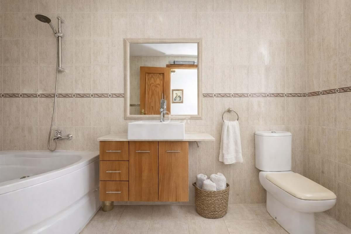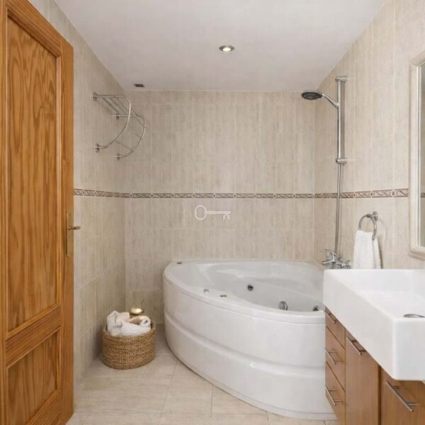 The master bedroom stands out in particular, featuring a private terrace with open views where you can even see the sea, a large built-in wardrobe, and an en-suite bathroom with a hydromassage bathtub, creating a comfortable and private retreat.