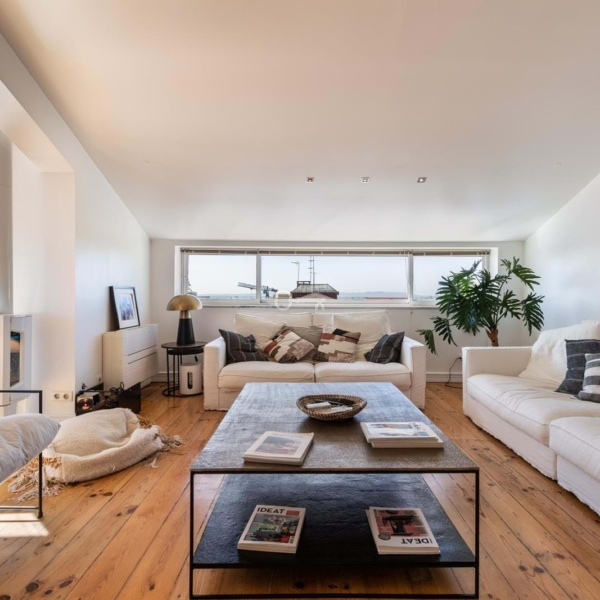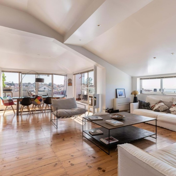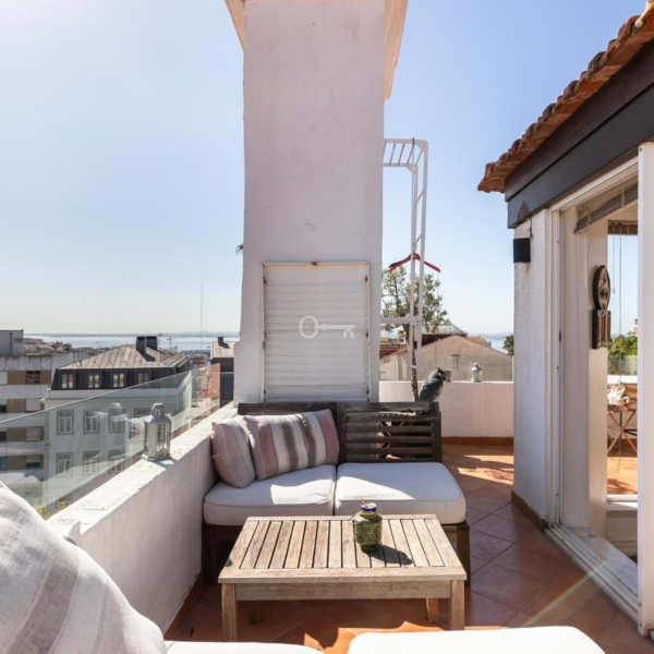 Penthouse 3 bedroom apartment with terrace and views of the Tagus river, facing South, East and West.