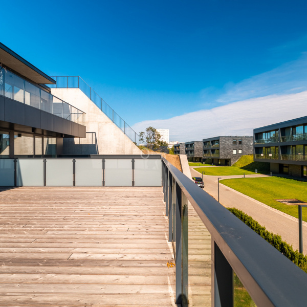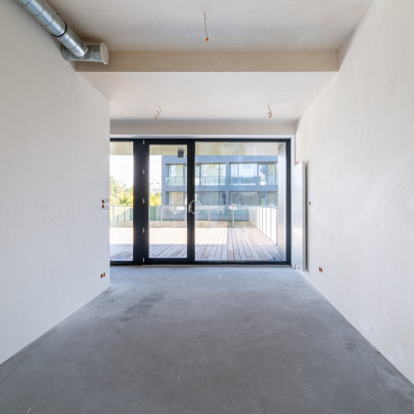 The layout can be arranged as you wish, our proposal is a spacious living room with access to a 60m2 terrace, combined with a kitchen and dining room, bedroom and an additional room that can serve as an office.