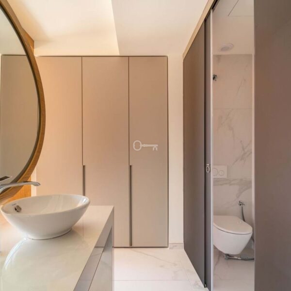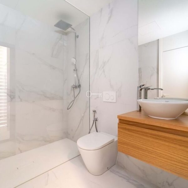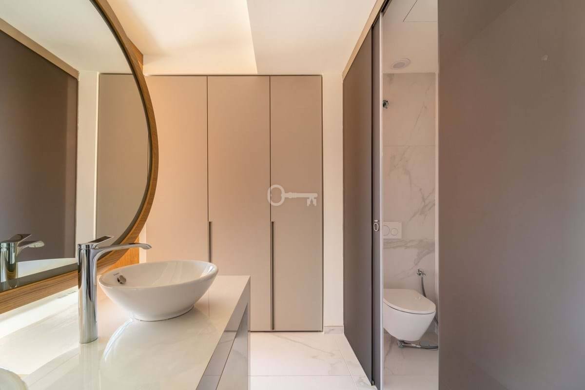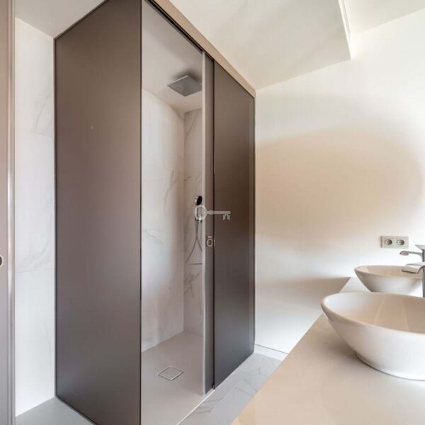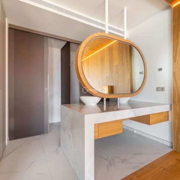 Main bedroom with ensuite bathroom and walk-in closet. This apartment is distinguished by the ingenious movable wall that connects the master bedroom-suite to the living room. This elongated sliding door is designed to duplicate the entrance of natural light and enjoying much better views. This easy interaction between the living spaces creates a flexible open area that is designed for you to enjoy the climate and lifestyle of Southern Spain. This clever design not only maximises the natural light of the Costa del Sol in both rooms, but also allows you to admire the splendid views from every corner of your home.