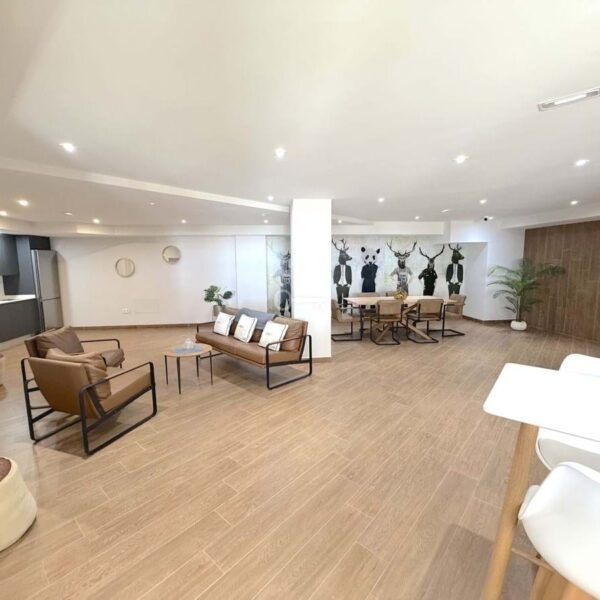 This bright and spacious 115 m² apartment offers 3 well-proportioned bedrooms and 2 modern bathrooms, designed with both comfort and functionality in mind. Built in 2019, the property features a contemporary design throughout, complemented by electric blinds installed across the entire apartment for added convenience and privacy. The large open-concept living and dining area connects seamlessly with a open-plan kitchen, creating a sociable and airy living space ideal for both everyday living and entertaining. A generously sized utility room is also located within the apartment, providing practical storage and laundry space. The property is sold fully furnished with inventory, allowing for a smooth move-in experience.