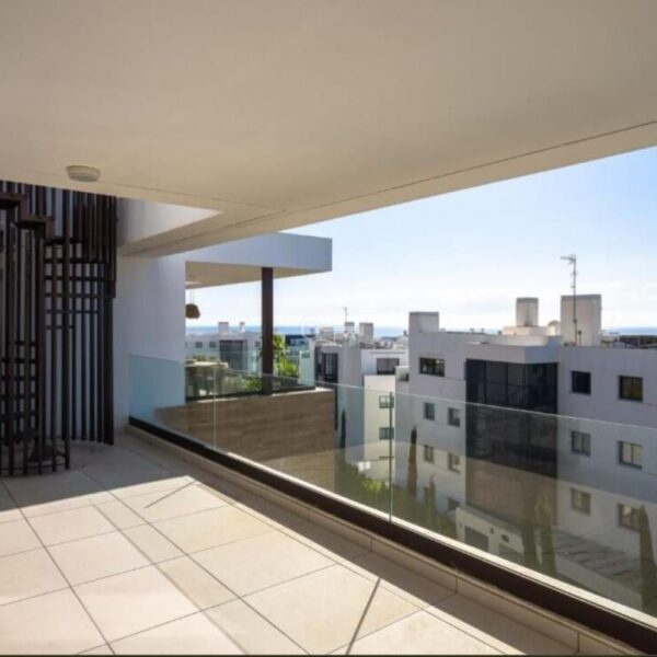 This beautifully designed two-bedroom residence combines contemporary style with effortless comfort, offering panoramic sea views and an exceptional sense of space. The private rooftop solarium, complete with a jacuzzi, provides the perfect setting for relaxing, entertaining, or simply enjoying the views from sunrise to sunset. Inside, the apartment features a bright open-plan layout, where the living and kitchen areas are seamlessly integrated and enhanced by large floor-to-ceiling windows that fill the home with natural light. Two private parking spaces and a storage room are also included for added convenience.