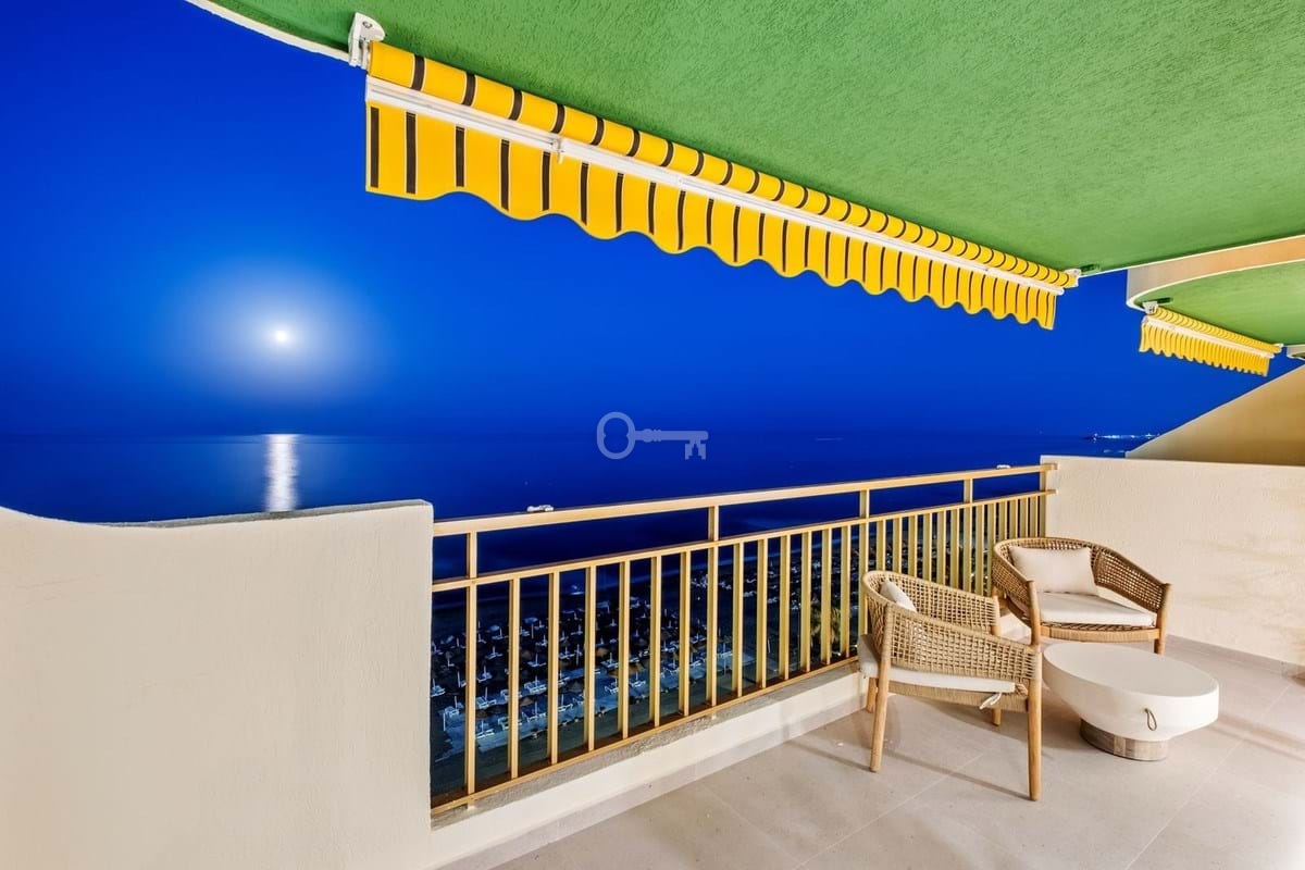 A spacious terrace offering front-row views of the sea and Fuengirolas vibrant Paseo Marítimo