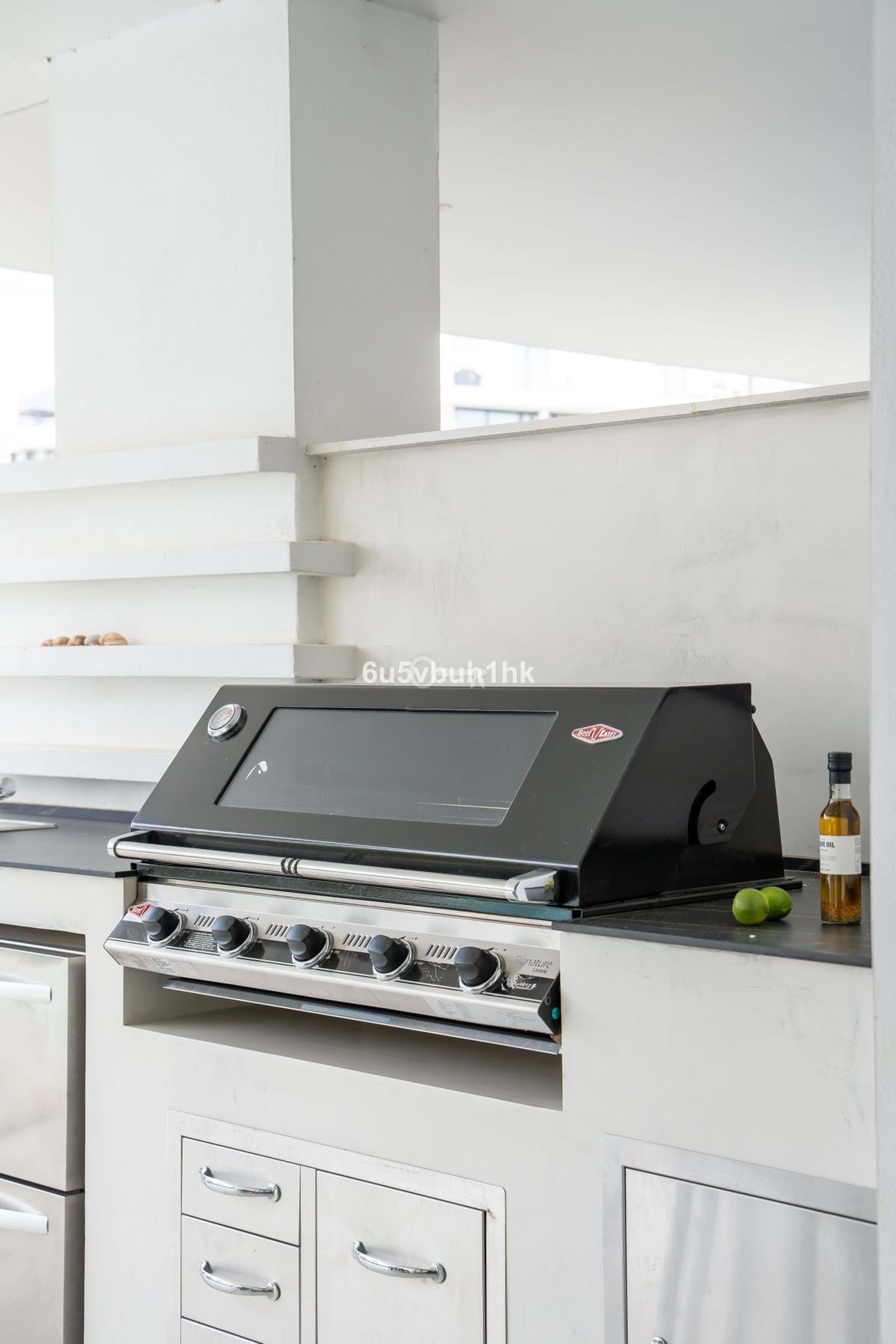 The bright and open-plan living area is complemented by a state-of-the-art kitchen, upgraded with NEFF appliances and premium countertops on both the island and work surfaces. From here, you step directly into your private garden with access to the community pool area. The outdoor space is designed for ultimate enjoyment, offering a 20 m² heated pool (Luxury Edition), a fully equipped outdoor kitchen with barbecue, and electric awnings with sun and wind sensors.