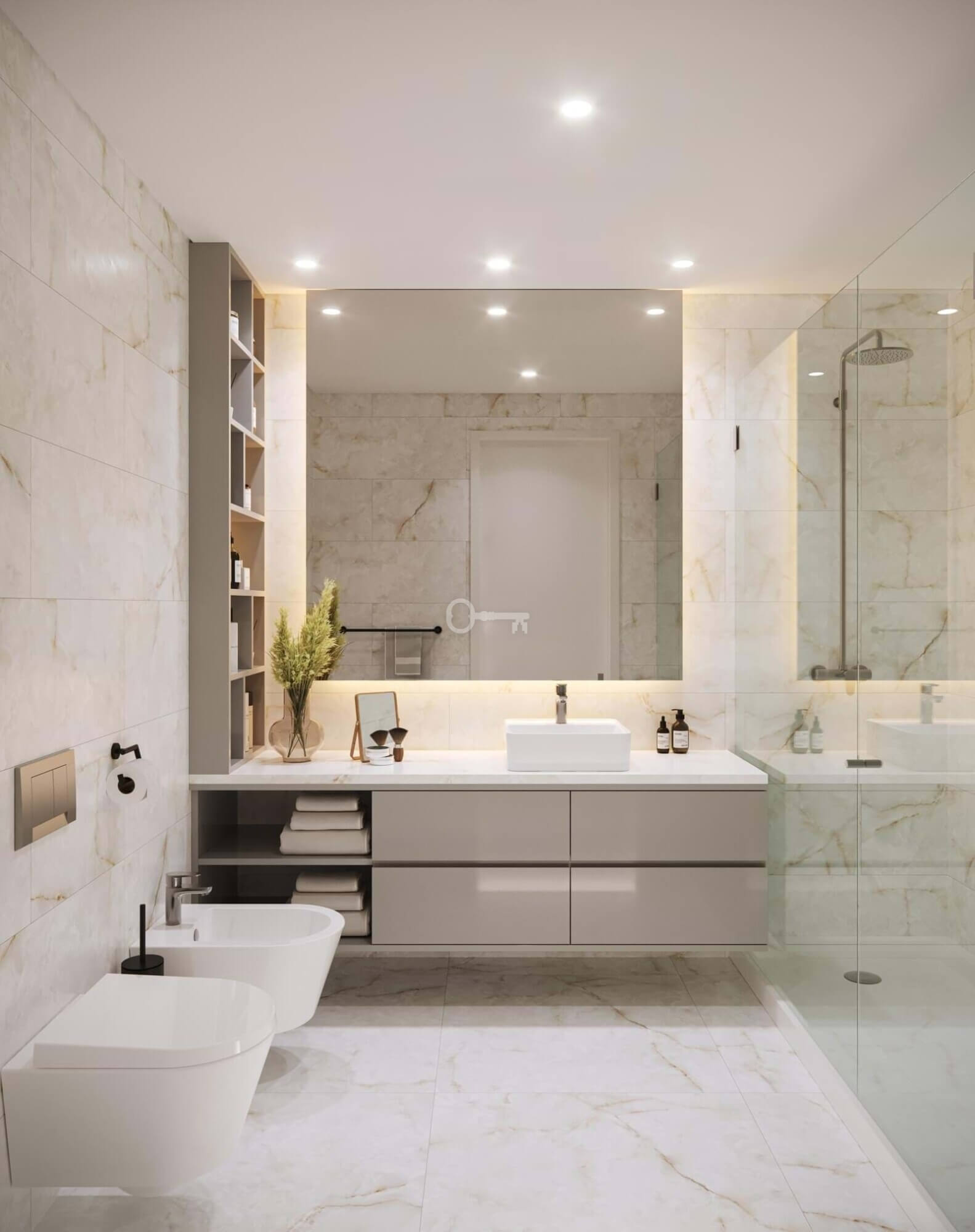 Here, life flows harmoniously between the sea and the land, promoting a perfect interaction between nature and modern architecture. And if that’s not enough, 10,000 sqm of land will be dedicated to a public garden, creating a green blanket that merges with the approximately 6,000 sqm of private gardens and exclusive green areas for the residents, located on a higher level. In this oasis, you’ll find a wide range of facilities designed for your well-being and comfort, including pools and a gym.