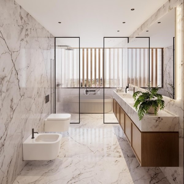 Each apartment has been designed with an exceptional level of attention to detail. The social and private areas feature noble oak wood flooring, adding warmth and elegance to every space. The bathrooms stand out for their use of Estremoz marble, with heated floors for maximum comfort. The countertops, made of Calacatta marble, are complemented by Italian faucets from the prestigious brand “Treemme” and sanitary ware from the brand “Galassia,” elevating the luxury experience. Electric towel warmers add an extra touch of comfort.