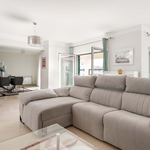 The condominium features an outdoor swimming pool surrounded by a beautiful garden, tennis court, and 24-hour security. Its privileged location allows easy access to the seaside promenade, Cascais Marina, restaurants, shops, and all amenities.