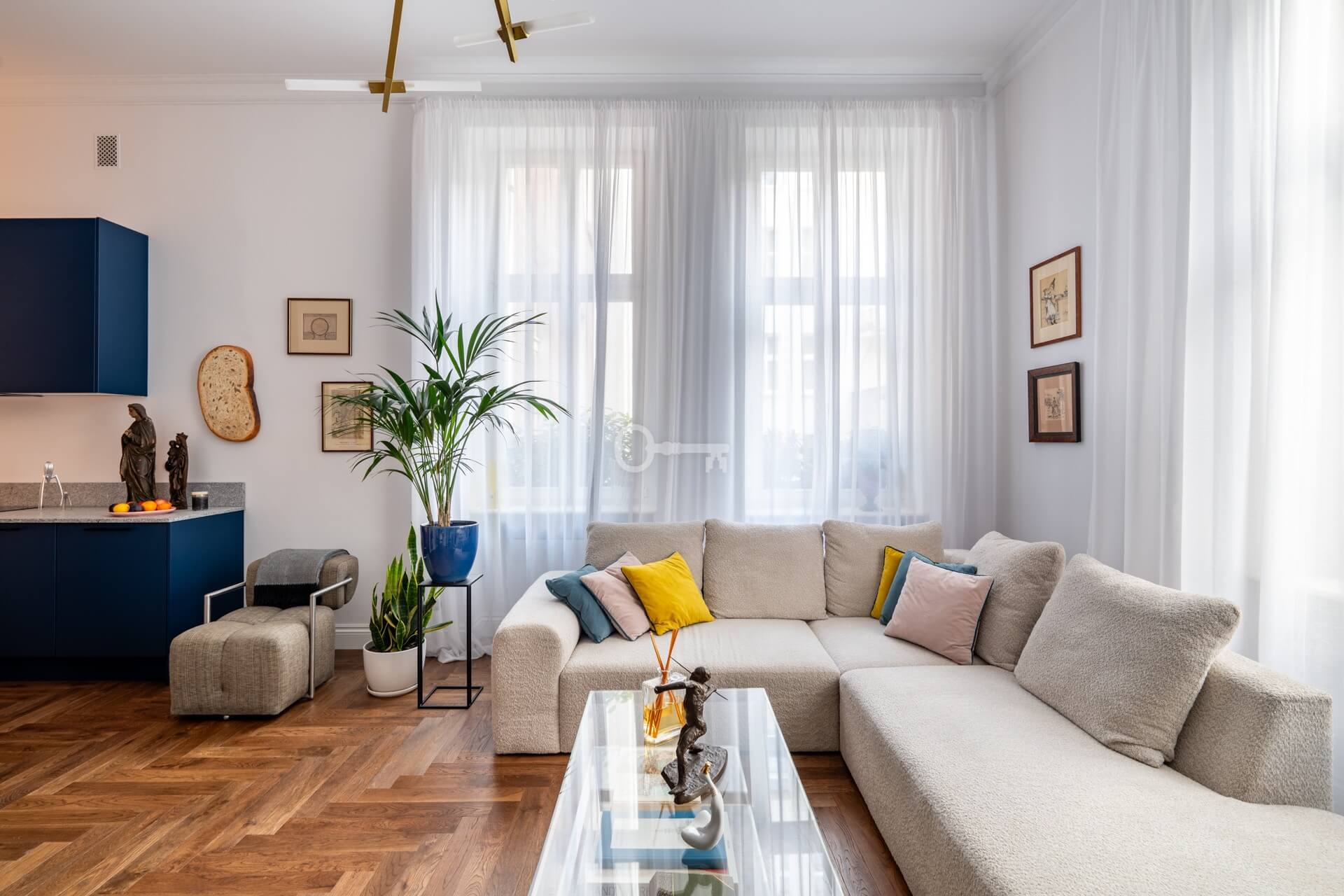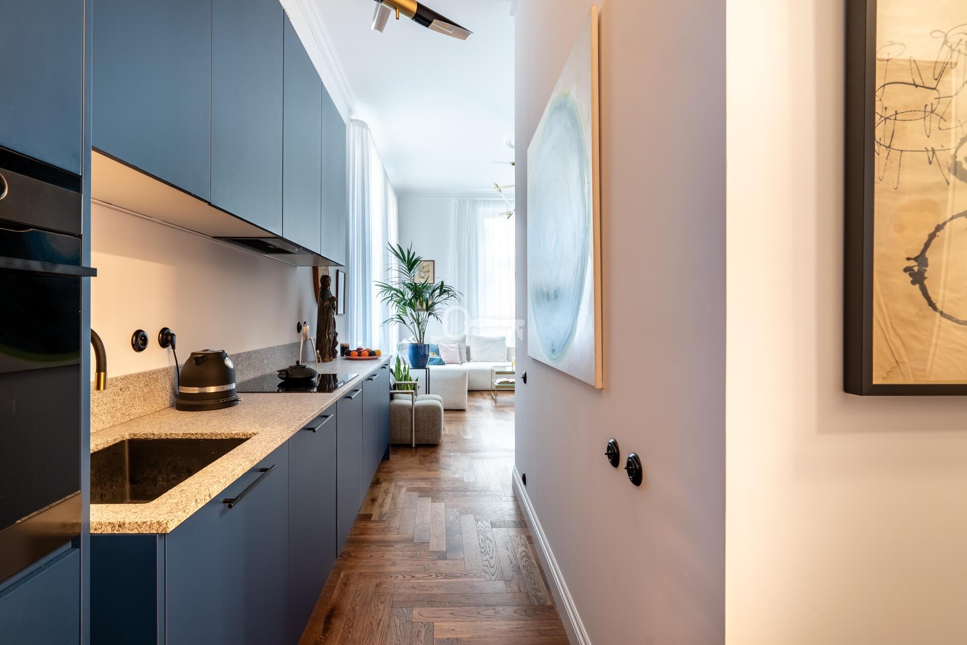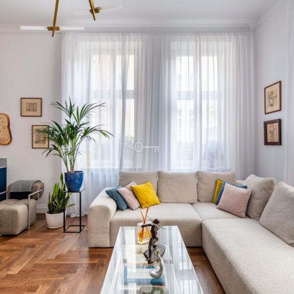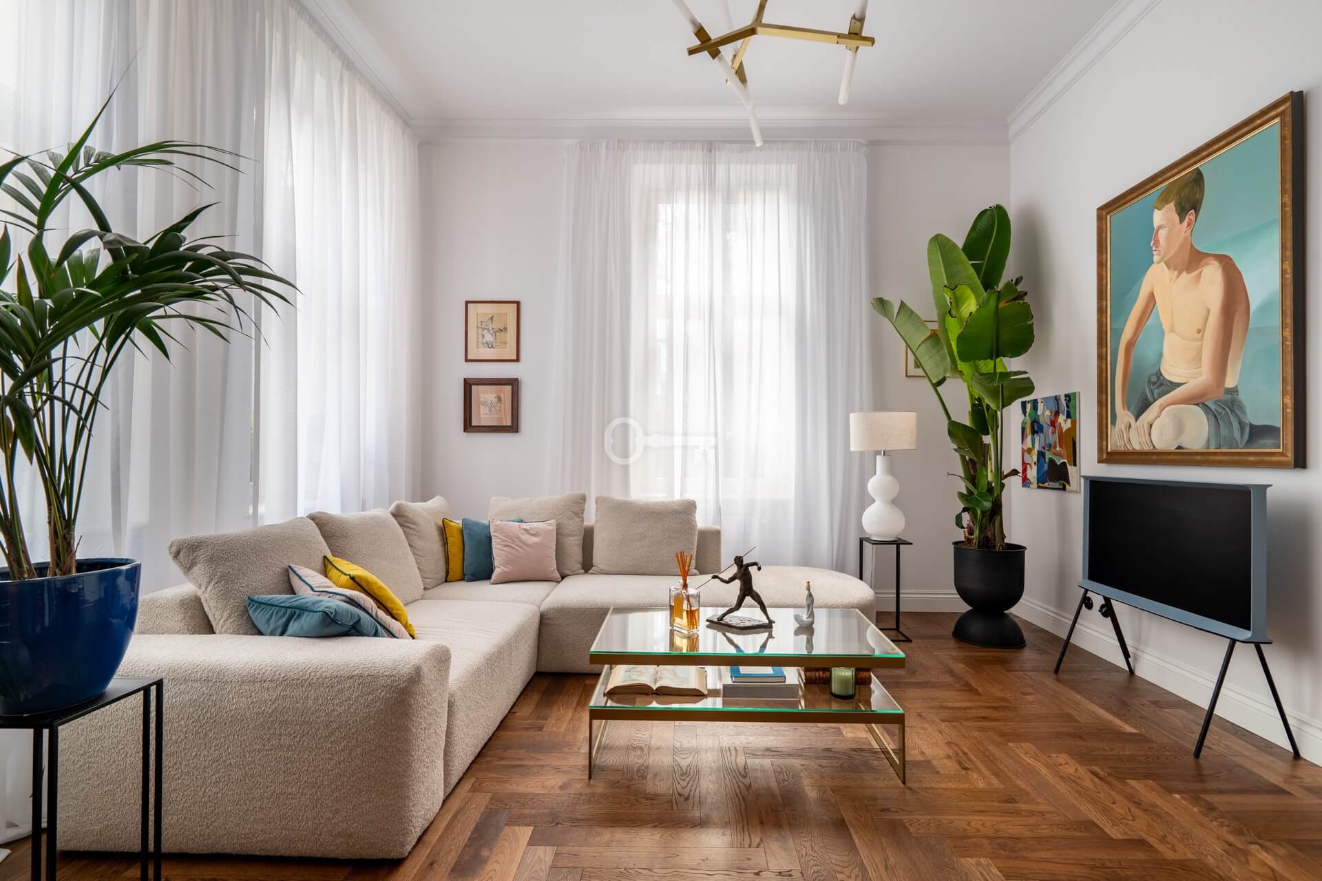 The apartment underwent a comprehensive renovation in 2024, supervised by architects, with attention to preserving its historic character and the highest standard of finish. The electrical system was replaced, a new water heating system was installed, and the window frames were renovated.