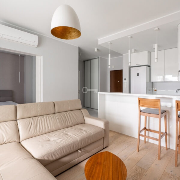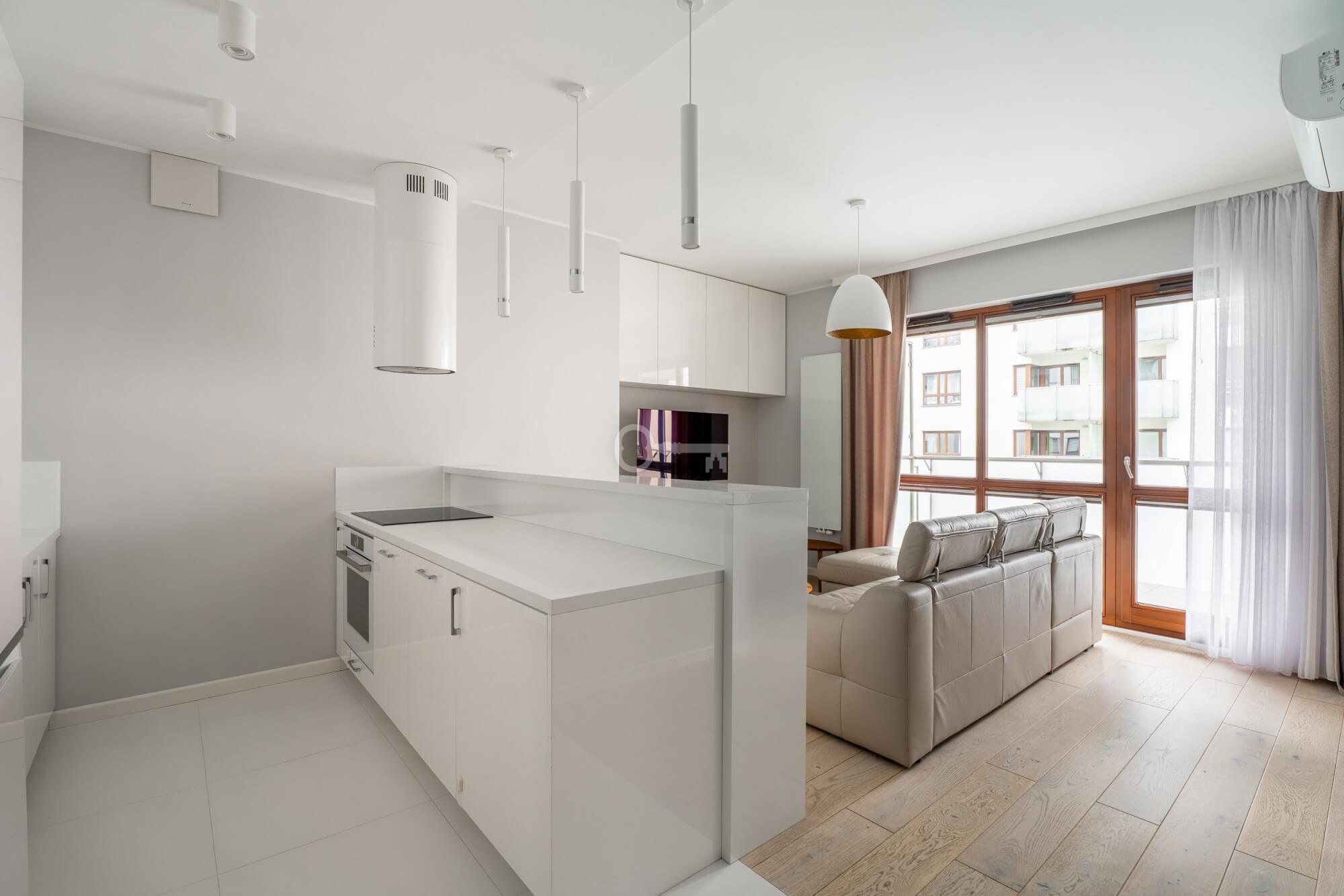 On the border of the city centre and Wola district | 600 metres to the underground station | High standard of finish | Air conditioning | Balcony
