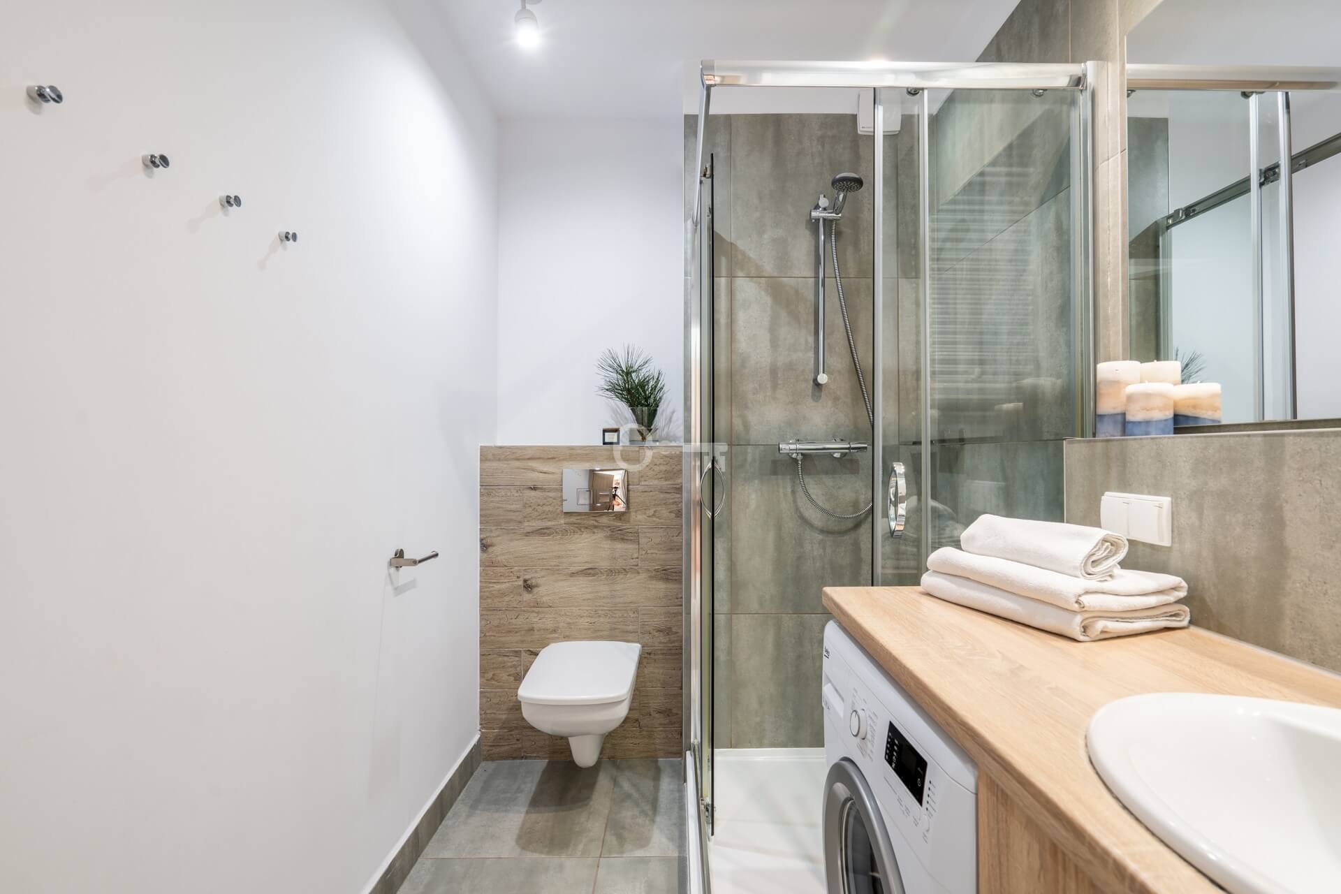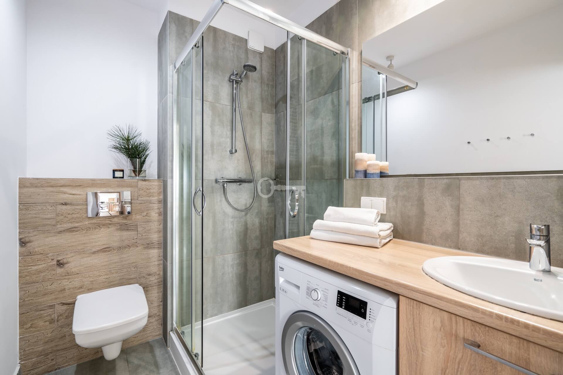 * bathrooms with shower and toilet.