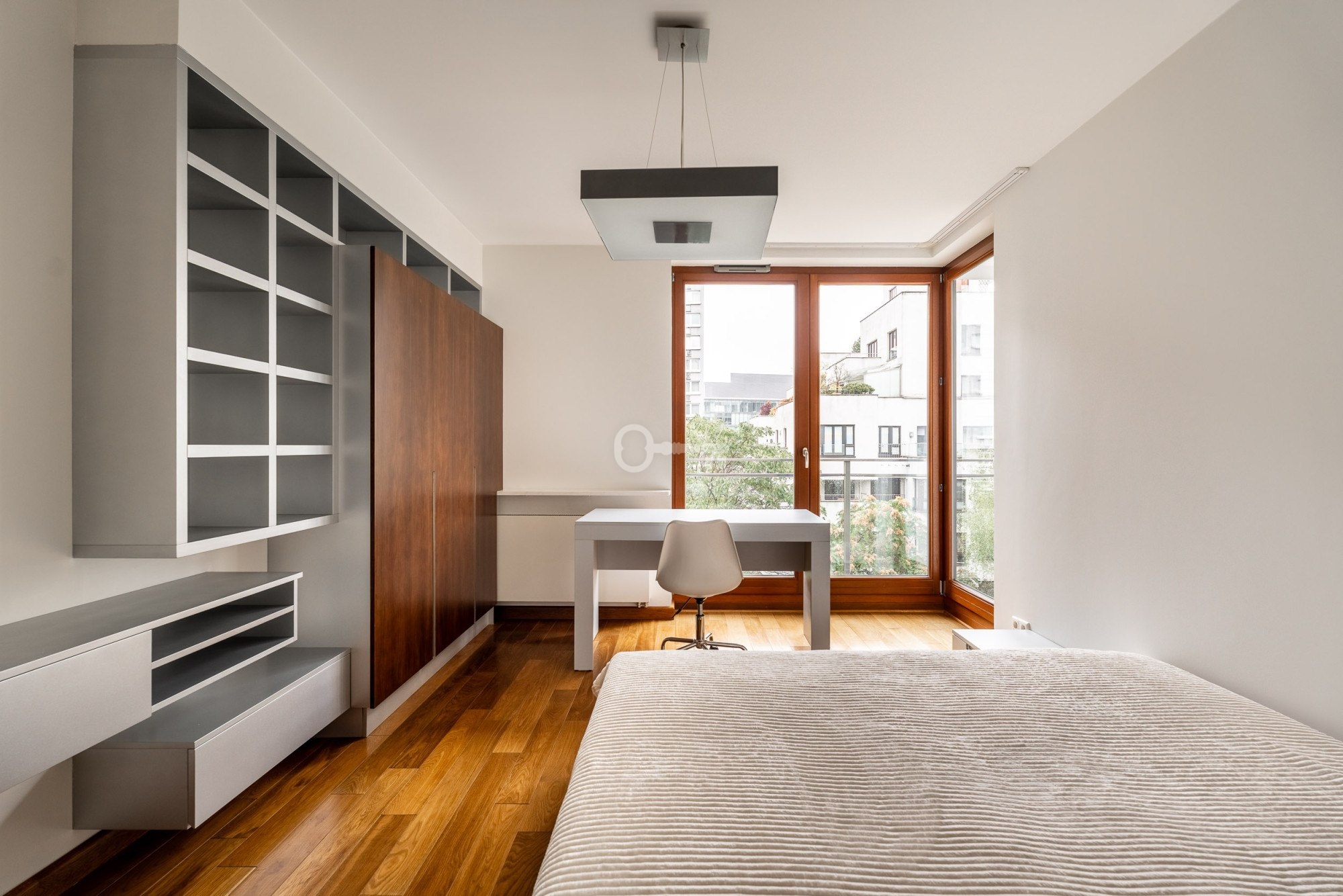 * two balconies – one overlooking Mirowski Park, the other adjacent to the master bedroom,