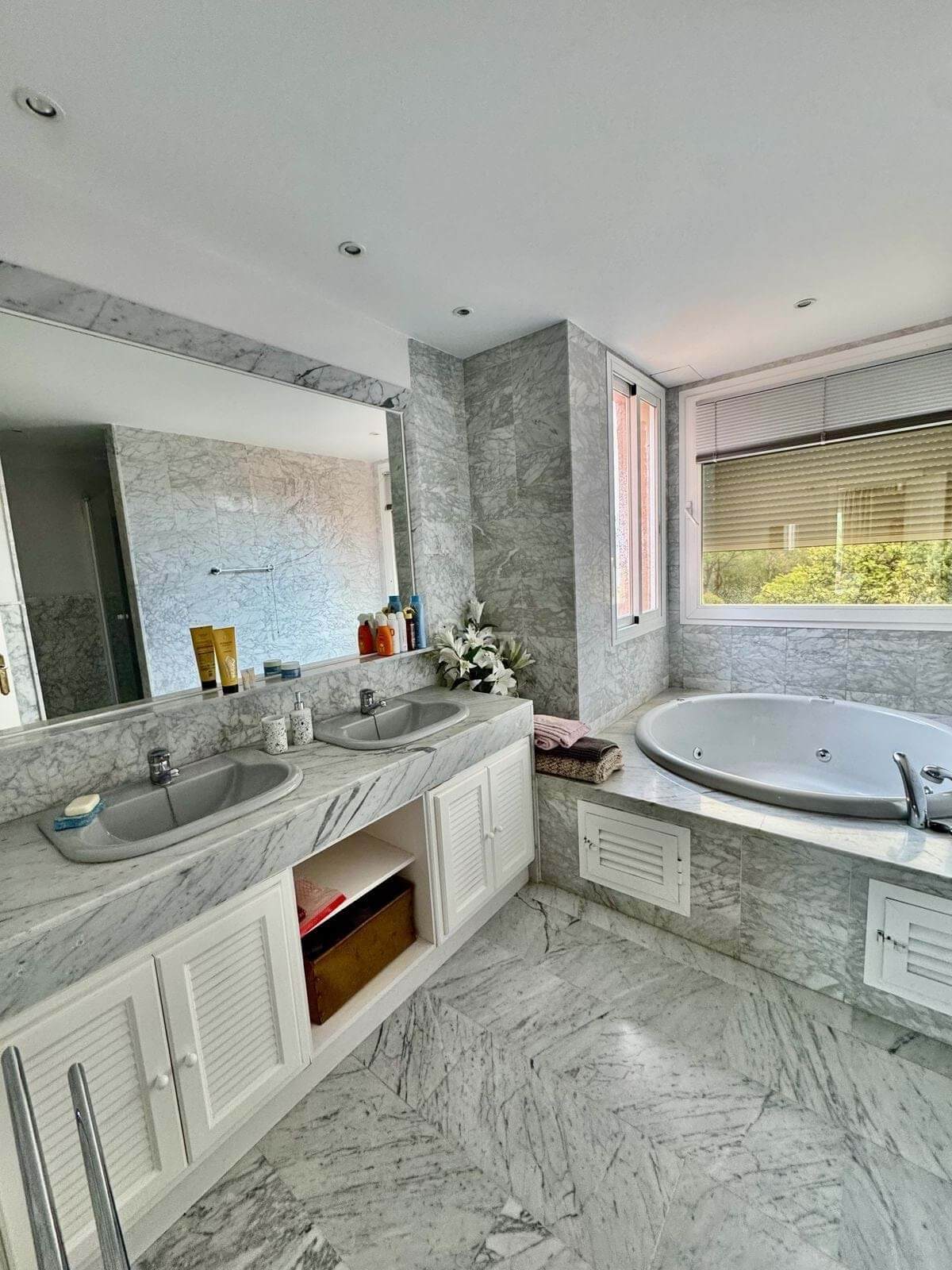 Beautiful duplex penthouse with 4 spacious bedrooms, with en-suite bathrooms, located in the prestigious ALHAMBRA DEL GOLF residential complex. The Mendieta property is accessed via a private lift. On the ground floor, in addition to the large living-dining room with a fireplace and access to a south-west facing terrace, there is also a refurbished kitchen with a utility room and a guest bathroom. Also on this floor are two spacious bedrooms with en-suite bathrooms. The upper floor consists of two very large bedrooms with beautiful vaulted ceilings, both with en-suite bathrooms. The master bedroom has access to another semi-covered terrace facing southwest. The apartment is sold with a parking space included.