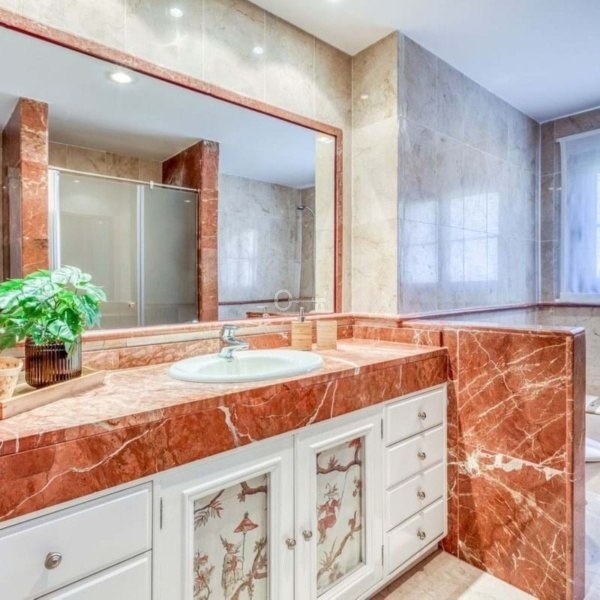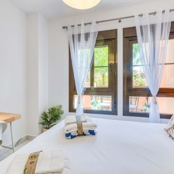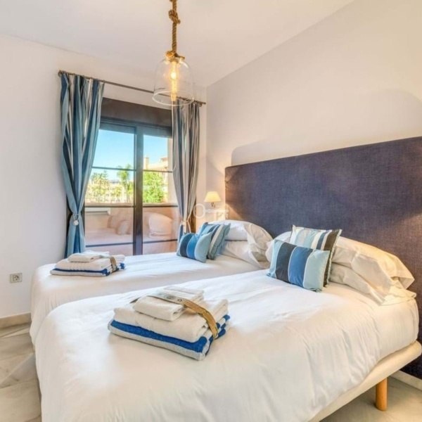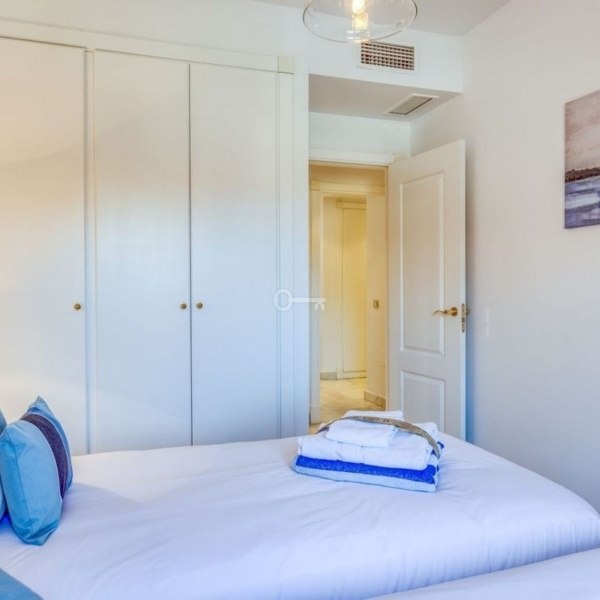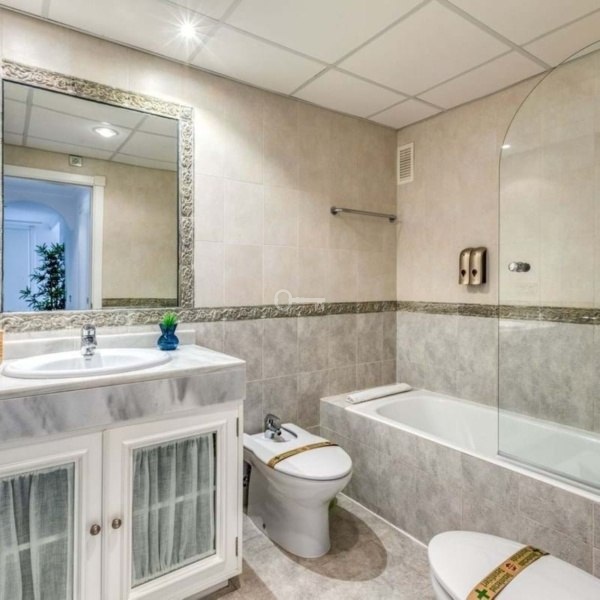 This exquisite 2-bedroom, 2-bathroom apartment is available for purchase in the prestigious Hacienda del Sol urbanization, conveniently located just a short walk from the beach and surrounded by various amenities. Spanning a constructed area of 130 m², this residence offers a blend of spaciousness, comfort, and a prime location on the New Golden Mile. The bright living-dining area, complete with a fireplace, opens onto a nearly 20 m² private terrace, perfect for savoring the delightful climate of the Costa del Sol.