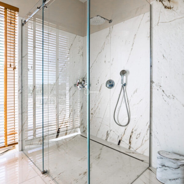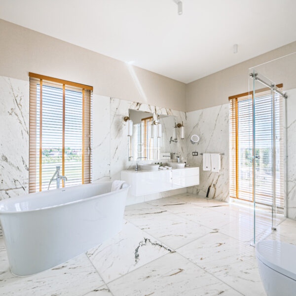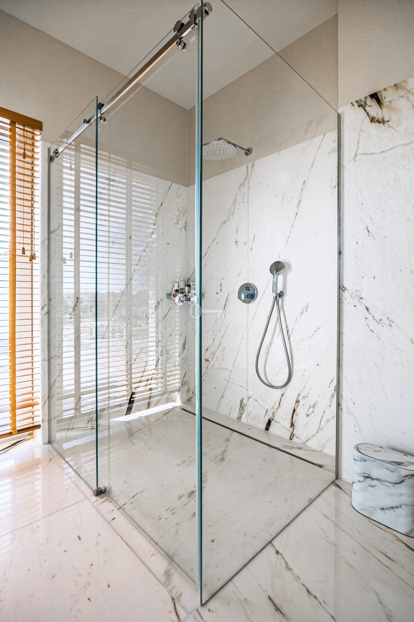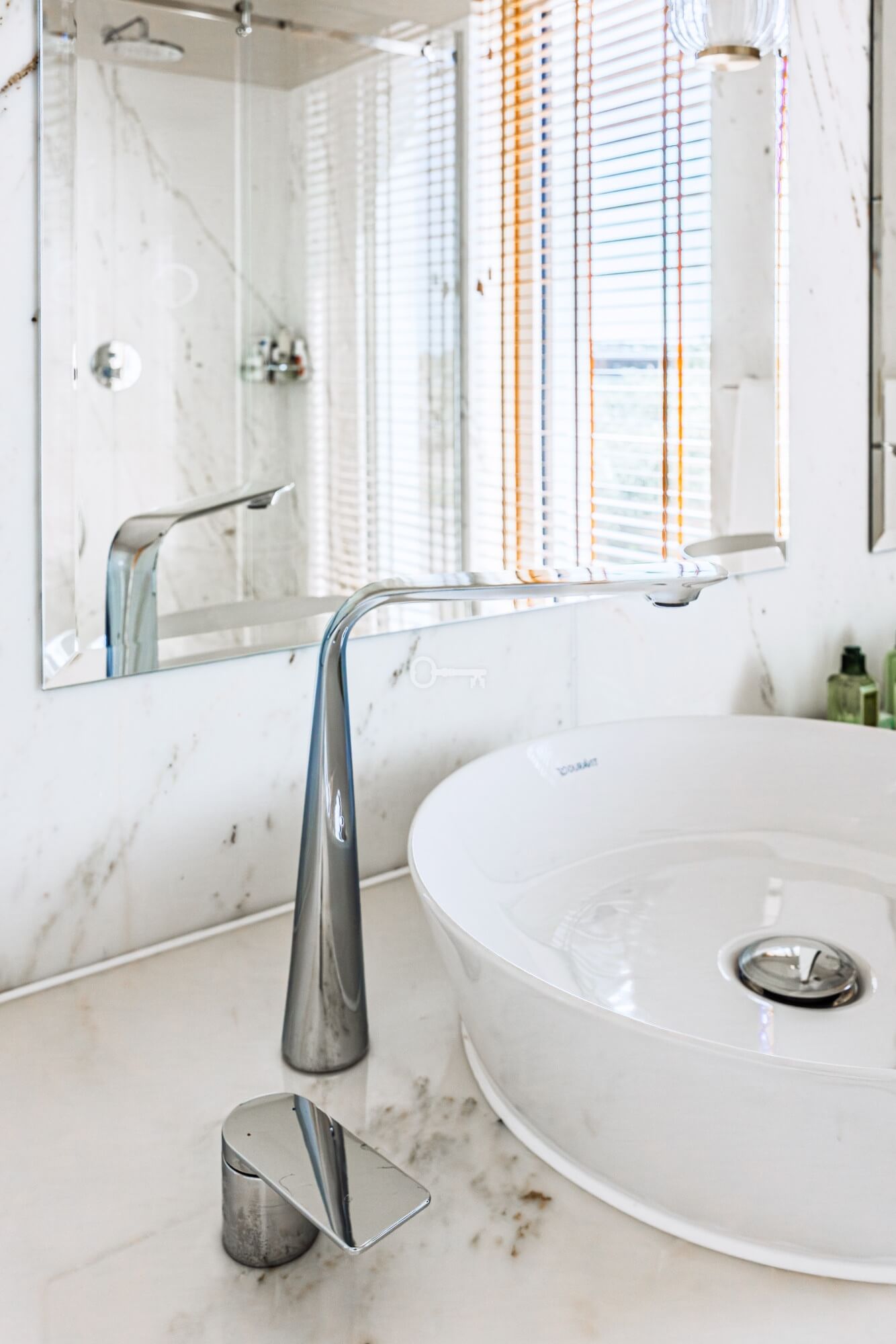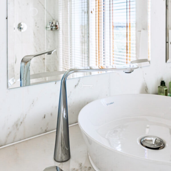* two bedrooms, each with a separate bathroom, a spacious wardrobe, and a comfortable bed,