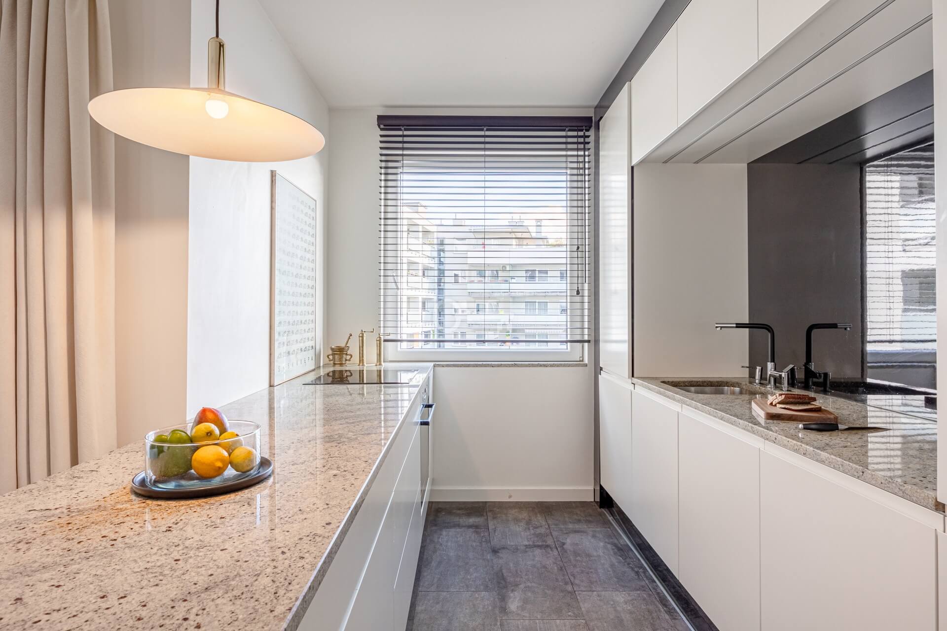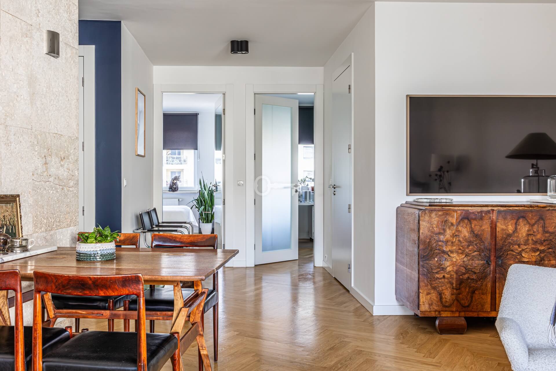 This beautiful apartment is distinguished by classic elegance with a touch of stylish accessories. Designed by a pair of designers, it was furnished with comfort in mind and with thoughts of space and freedom.