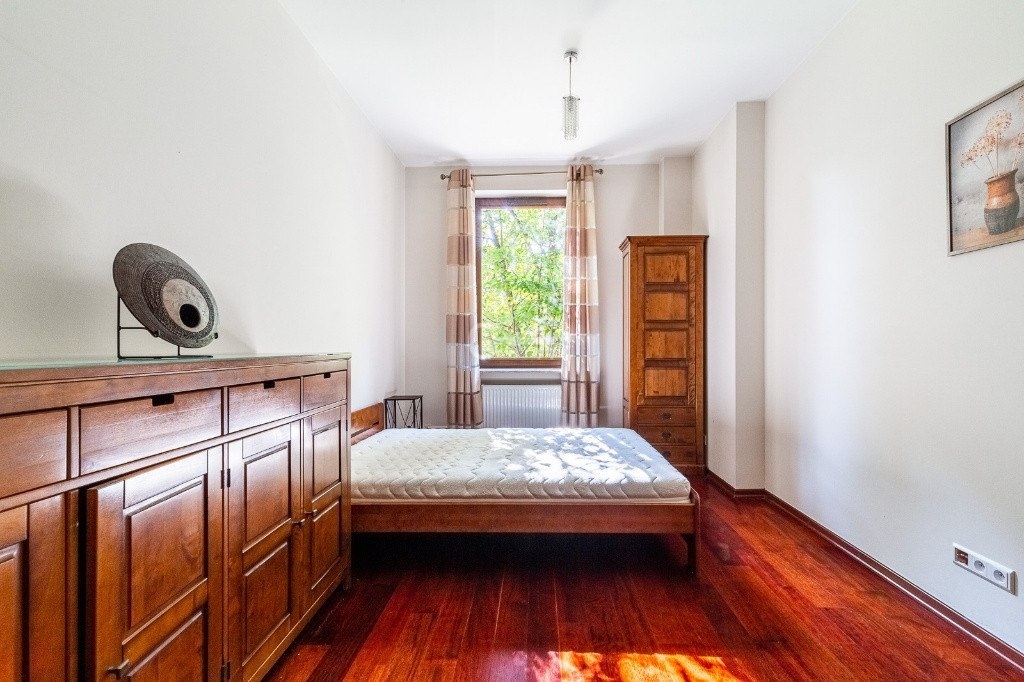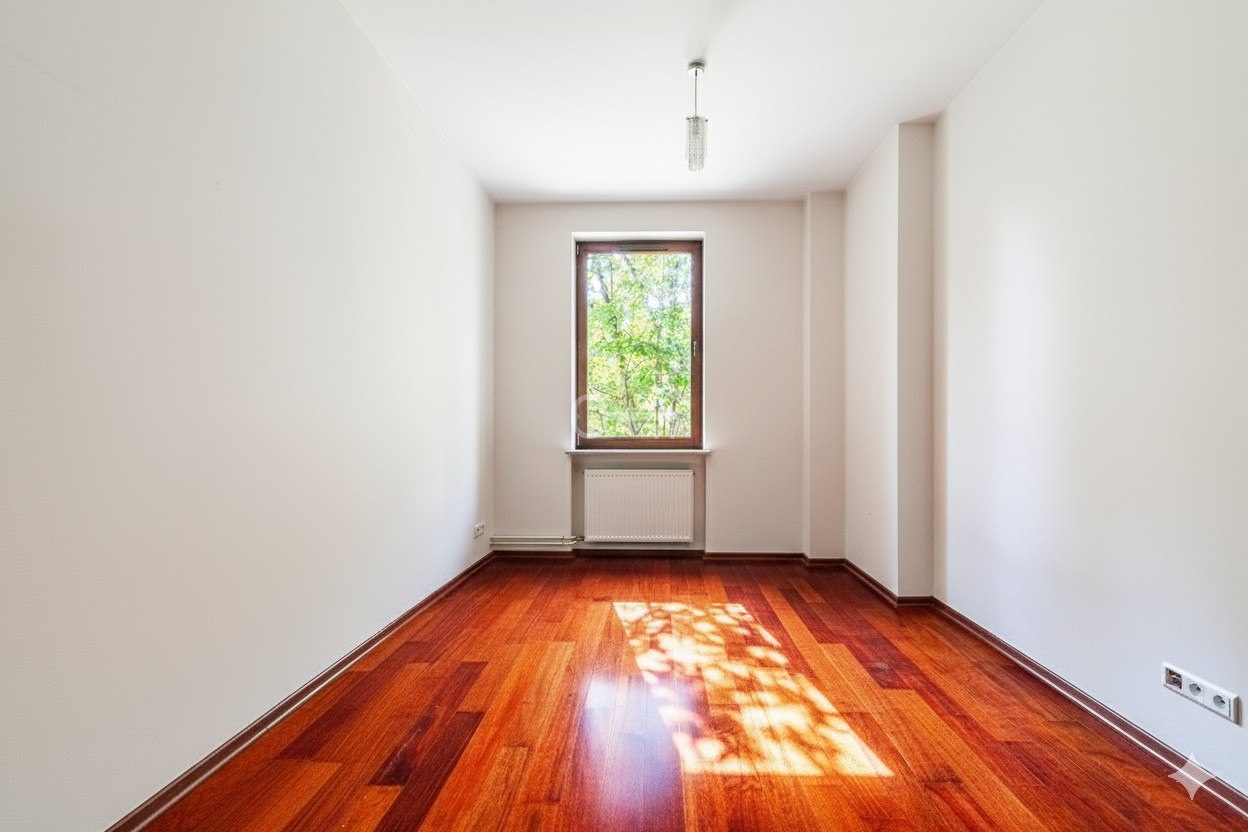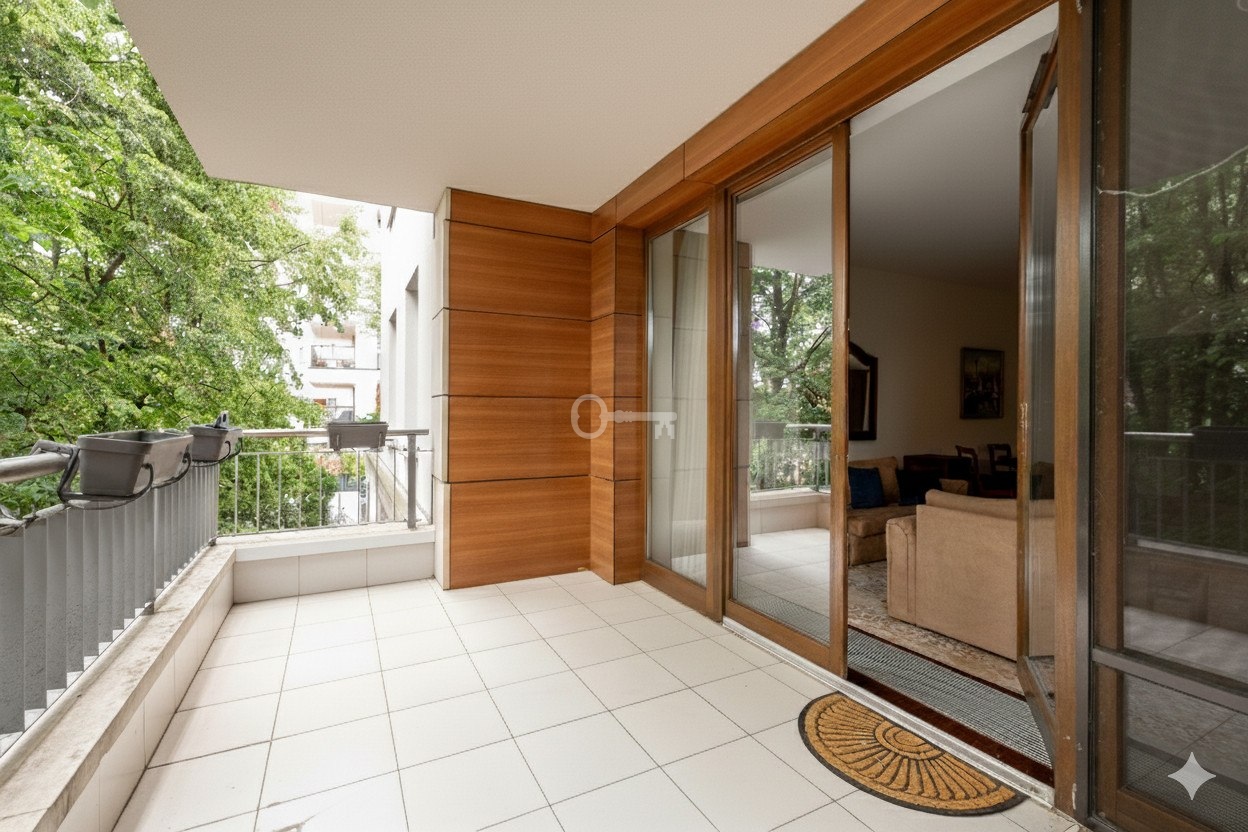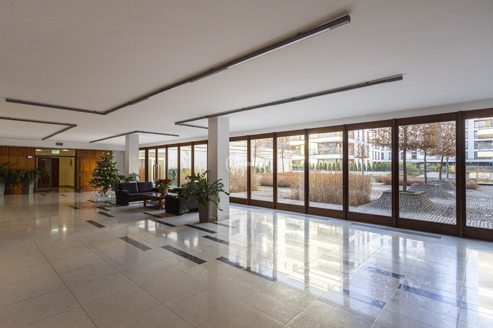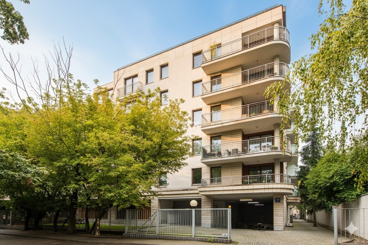 An intimate apartment building surrounded by single-family houses and a park. Stone-lined staircase. Reception at the entrance to the building, spacious, representative entrance hall with leather sofas overlooking an elegant patio. Wonderful green surroundings, right next to a park. The building has a billiard room, ping pong, gym, and sauna for the exclusive use of residents.