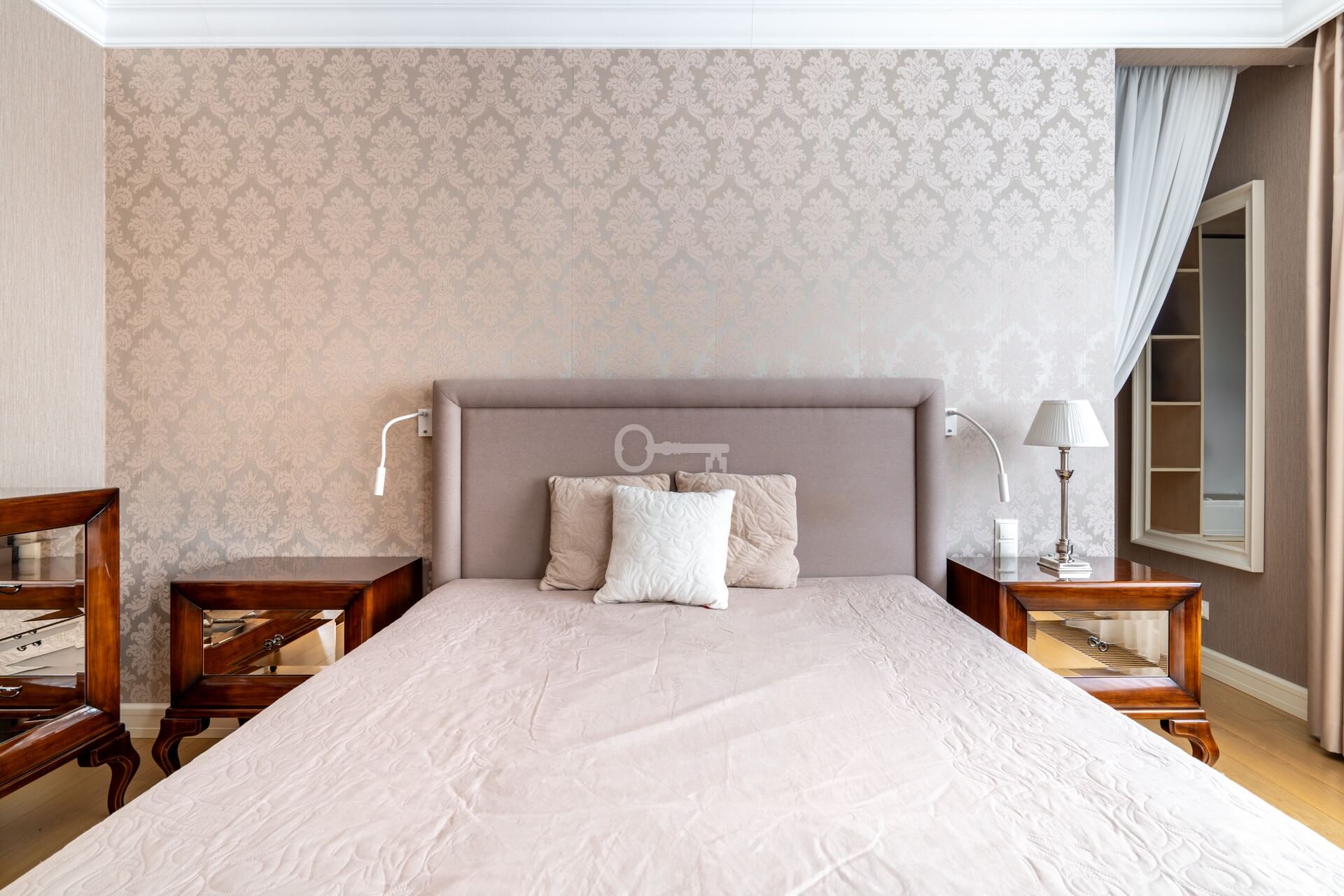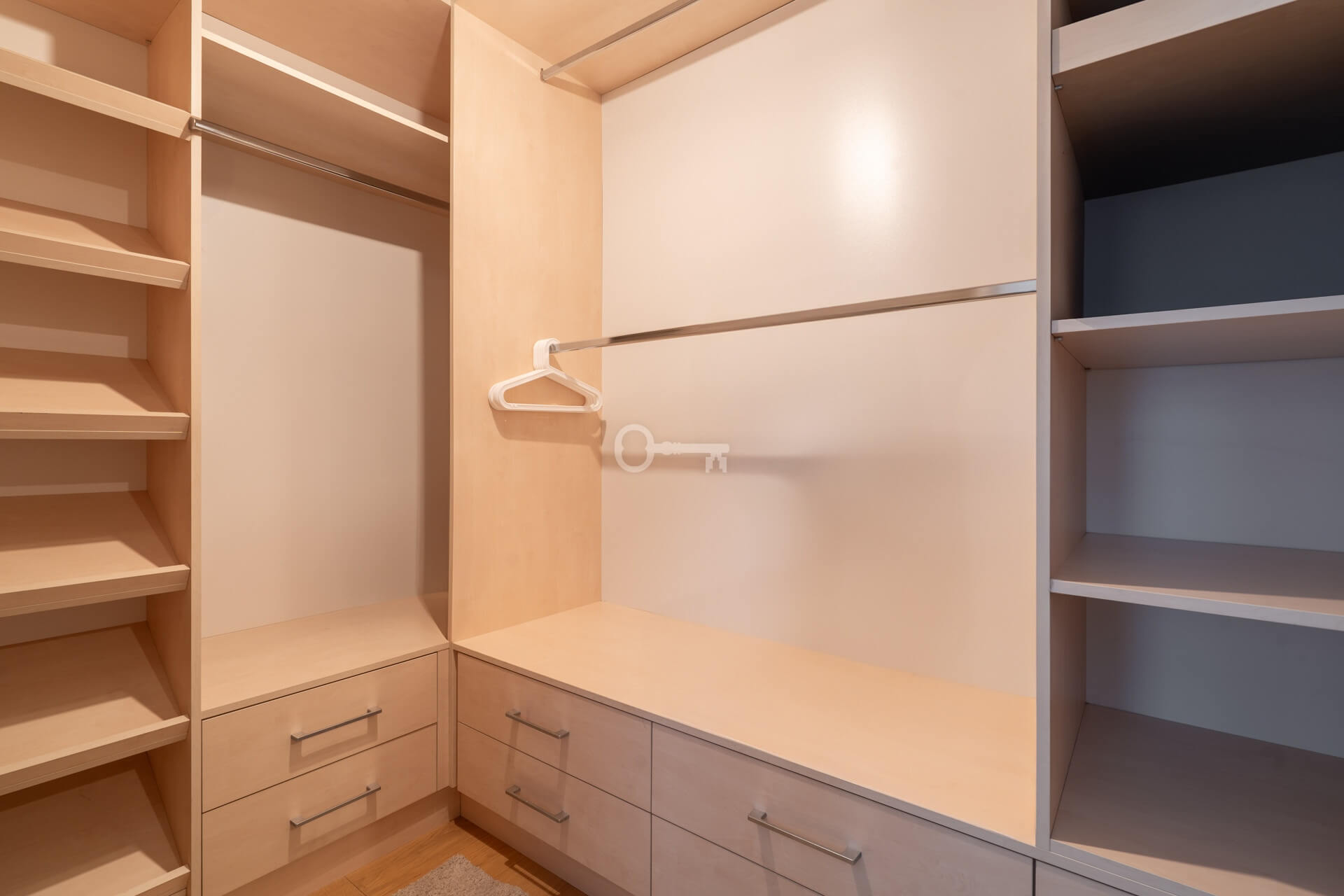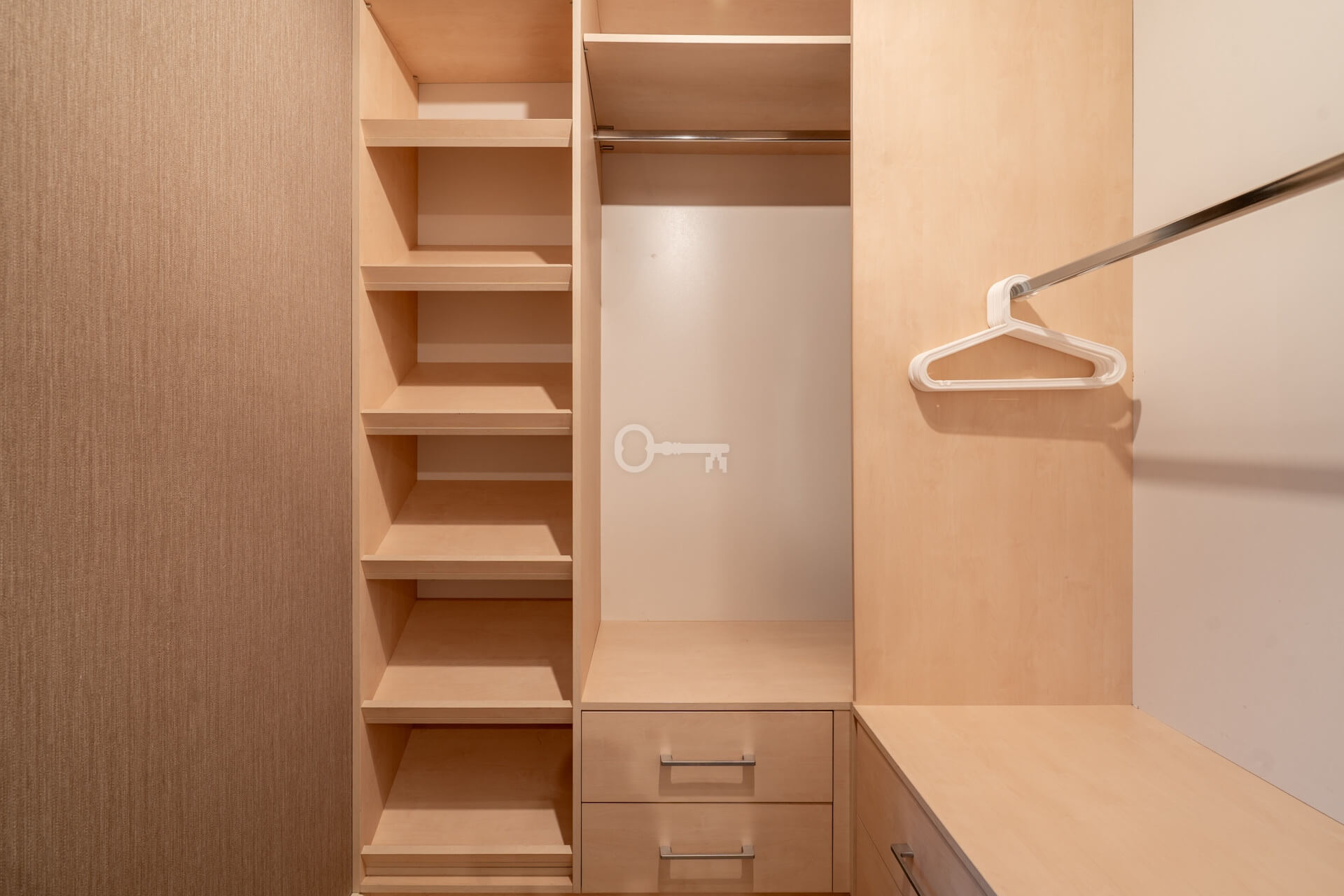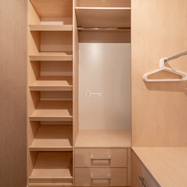 * a bedroom with an adjoining large walk-in wardrobe,