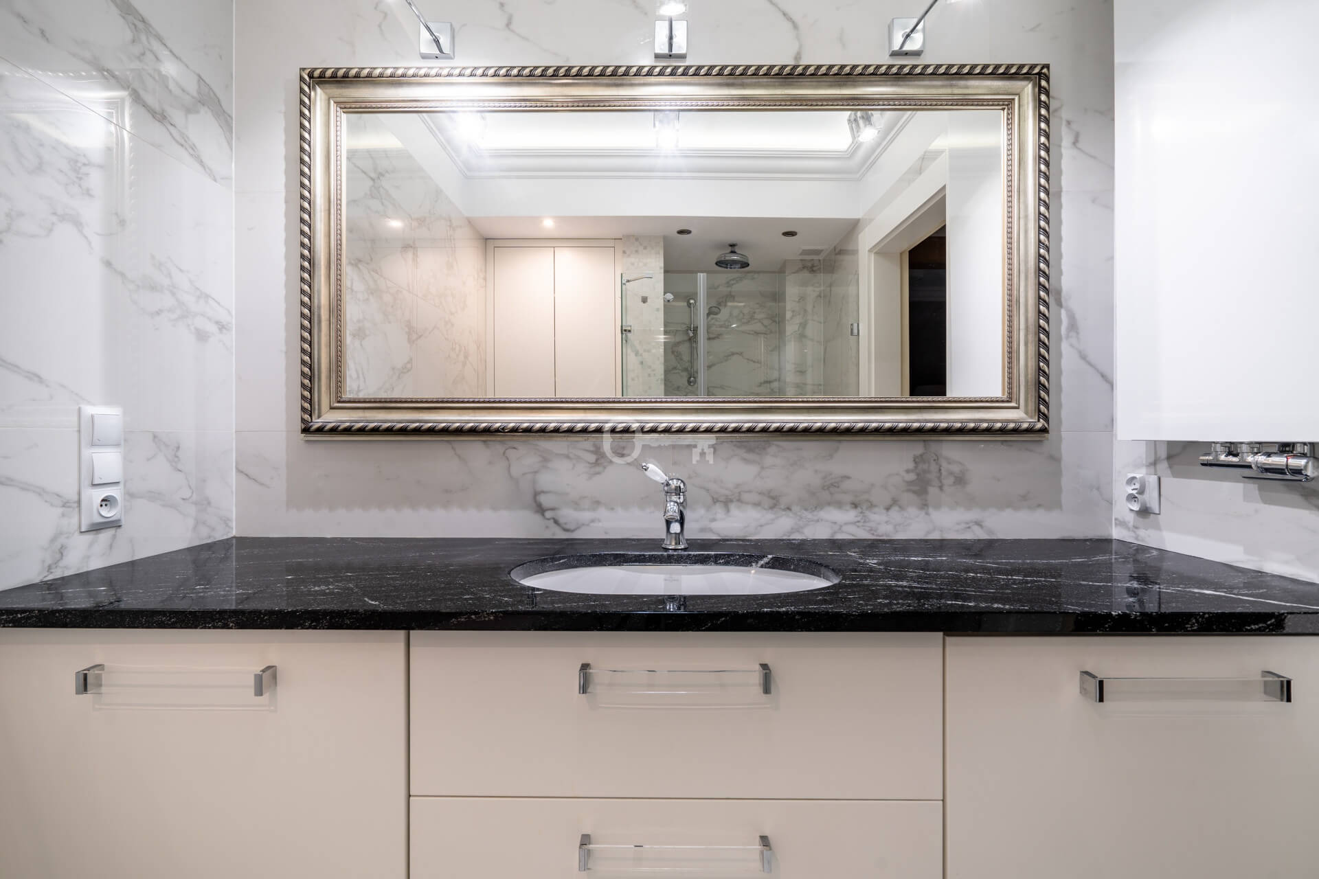* a bathroom with a shower,