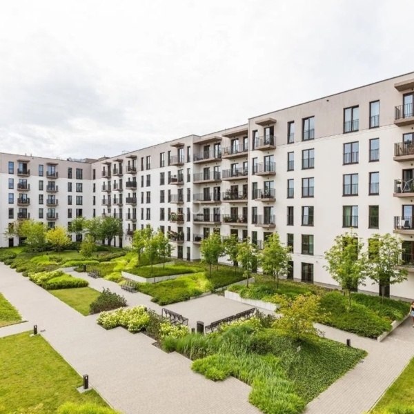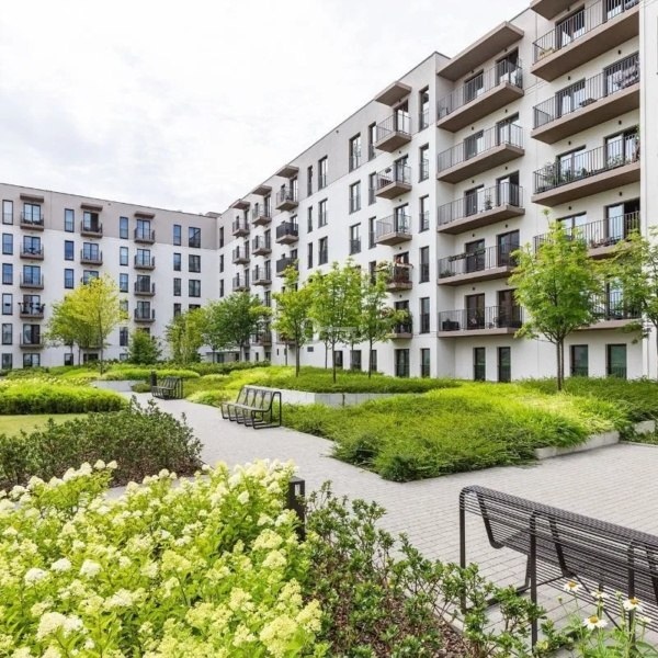 The area is rich in restaurants, cafés, clubs, and cultural institutions such as cinemas and theaters. Convenient public transport, including two nearby metro stations on Line II, ensures quick access to the western part of the city. Additionally, a pedestrian and cycling bridge, scheduled to open in spring 2024, will allow for easy access across the Vistula River in just a few minutes.