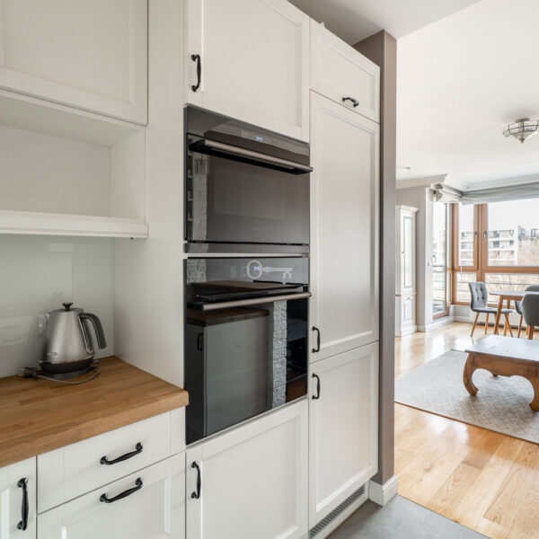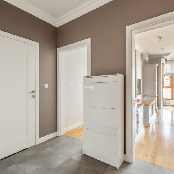 For rent: a unique, meticulously designed 57 m² apartment located in Warsaw’s Wola district on Sowińskiego Street.