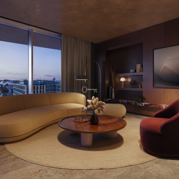 The residential part has been meticulously analyzed and designed with a focus on comfort, convenience, and resident-friendly solutions. The highest quality materials and technical solutions have been used, while the common areas are arranged with great taste and attention to functionality.