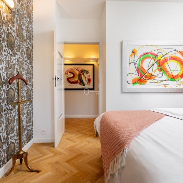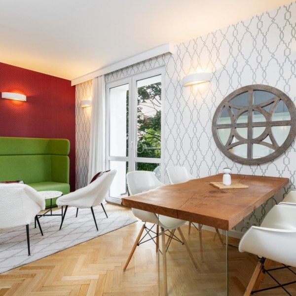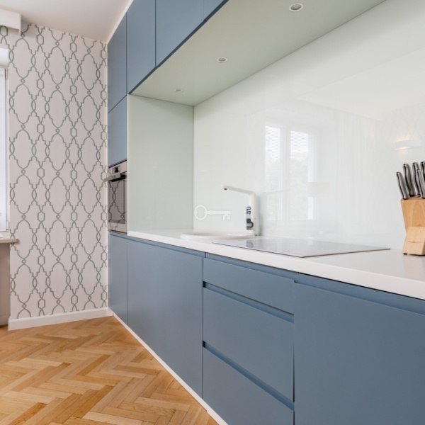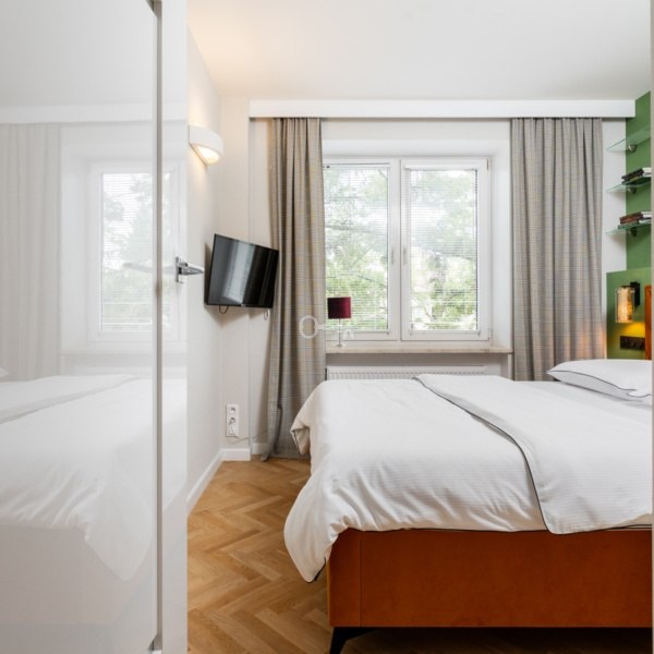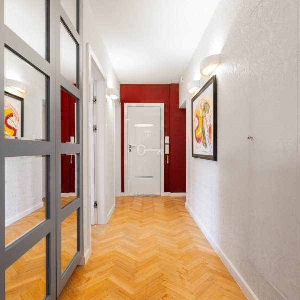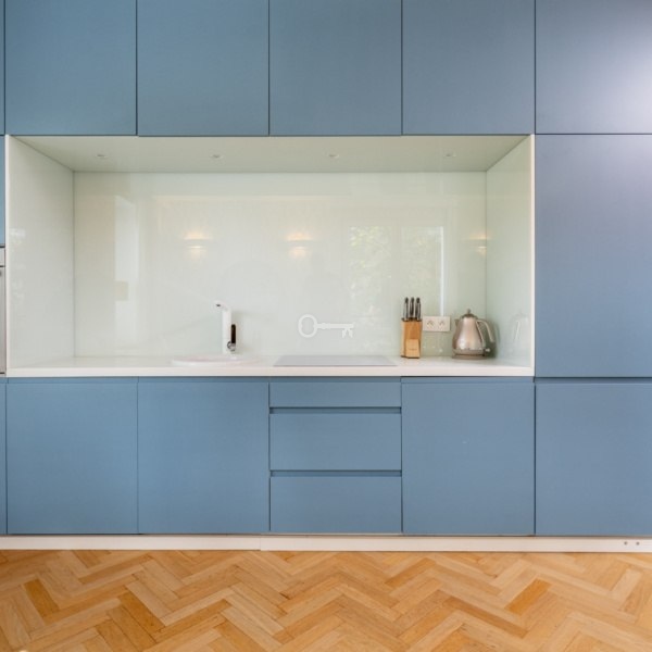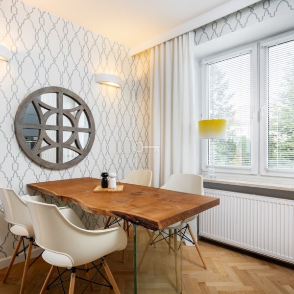 The apartment has been finished with great attention to detail and maintained to a high standard, ensuring comfort of use. The floors are laid with high-quality panels, and the cohesive interior design creates a cozy and modern space. The kitchen is fully equipped with necessary appliances (refrigerator, dishwasher, induction hob, oven). The bathroom features modern fittings and a large shower cabin. The apartment is furnished and ready to move in.