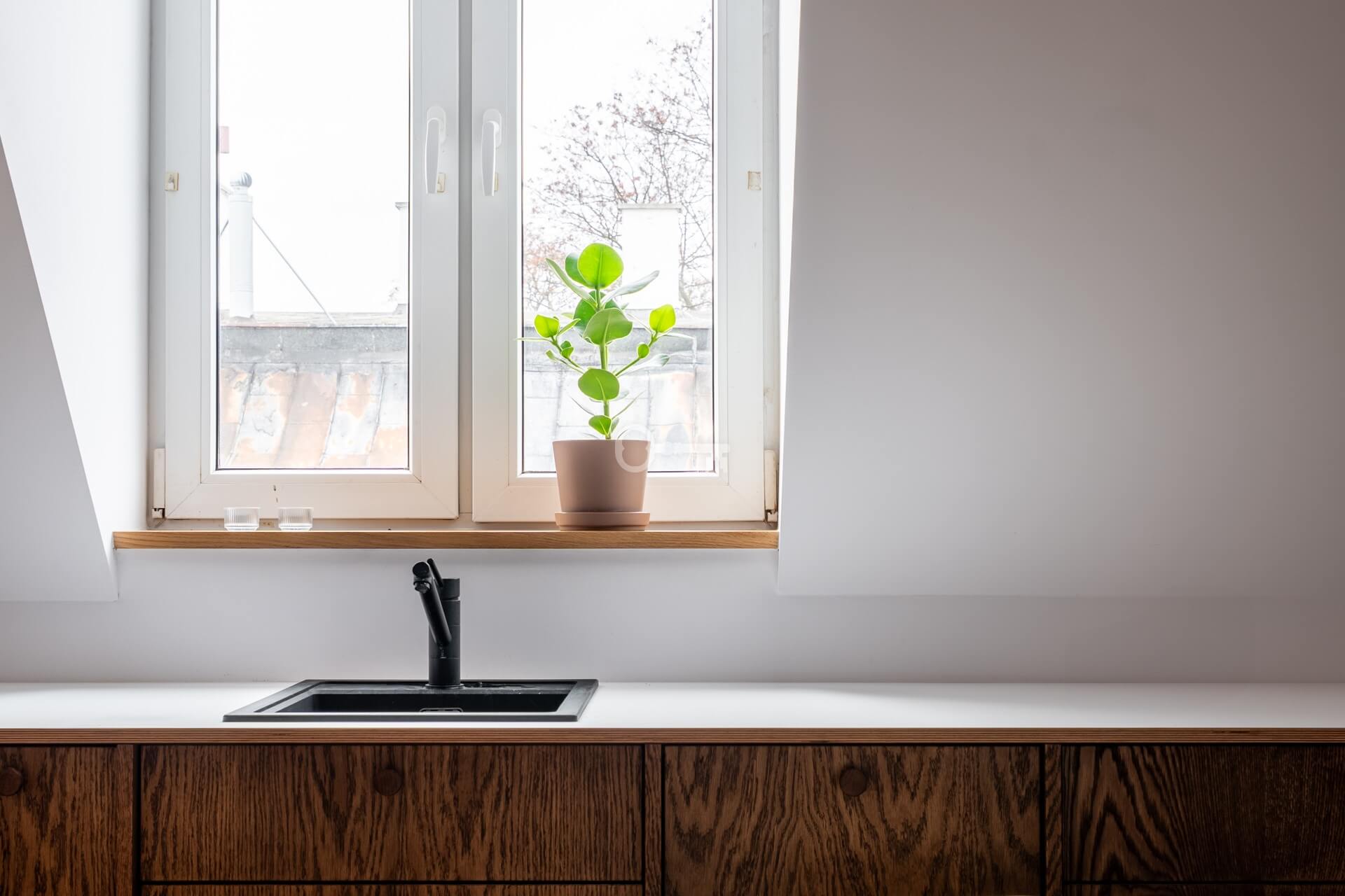 The kitchen is fully functional. All kitchen units were carpenter-made, as were the wardrobe in the bedroom, the cabinets in the bathroom, and the hallway.