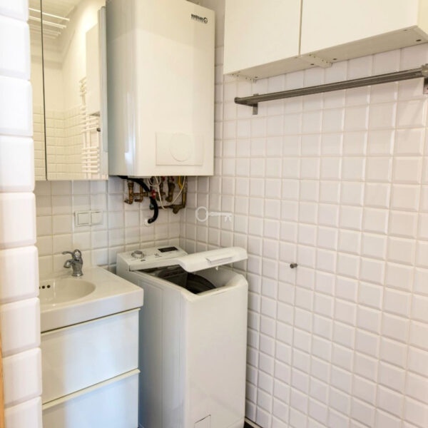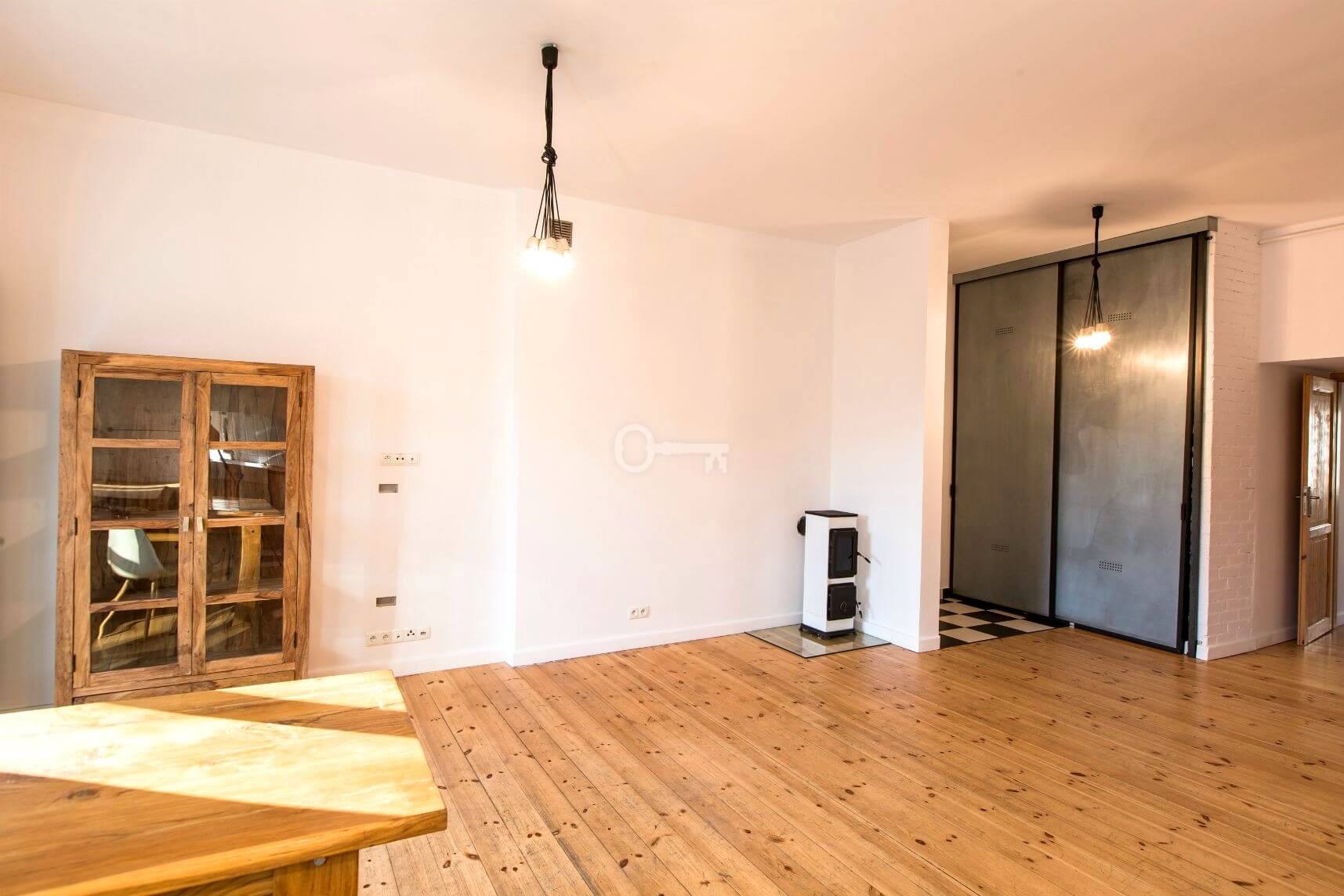 The apartment underwent a full renovation of its systems in 2015 and a refresh in 2025. The 3.1-meter-high interiors with dual exposure (east-west) are perfectly lit. The floors are covered with natural wood planks, and the passive windows and modern condensing boiler ensure low maintenance costs.