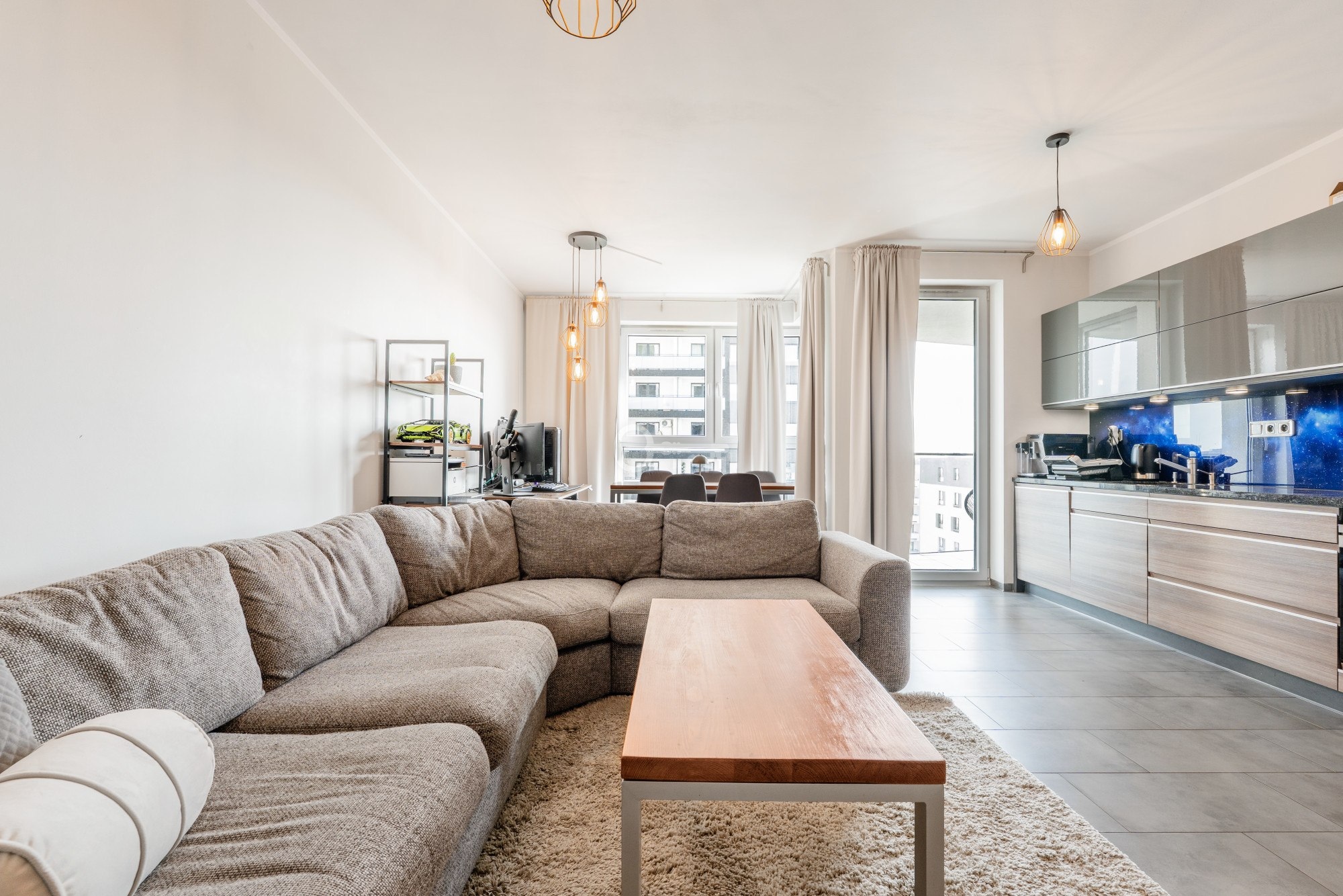 The apartment is finished to a high standard, fully furnished and equipped – ready to move in or continue renting. Both the living room and the bedroom have access to a large terrace with a panoramic view of the city, which is a unique space for relaxation and meetings. Bright interiors, a functional layout, and carefully selected materials create a harmonious, comfortable living space.