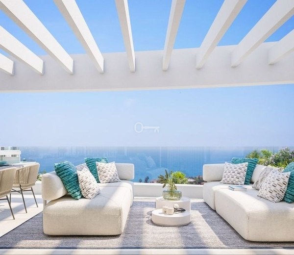 This stunning penthouse apartment, located in the highly sought-after Royal Palm Mijas complex, will be completed in October 2025. Designed with convenience and views in mind, all rooms are positioned on one side, offering breathtaking sea and mountain views and direct access to the spacious terrace.