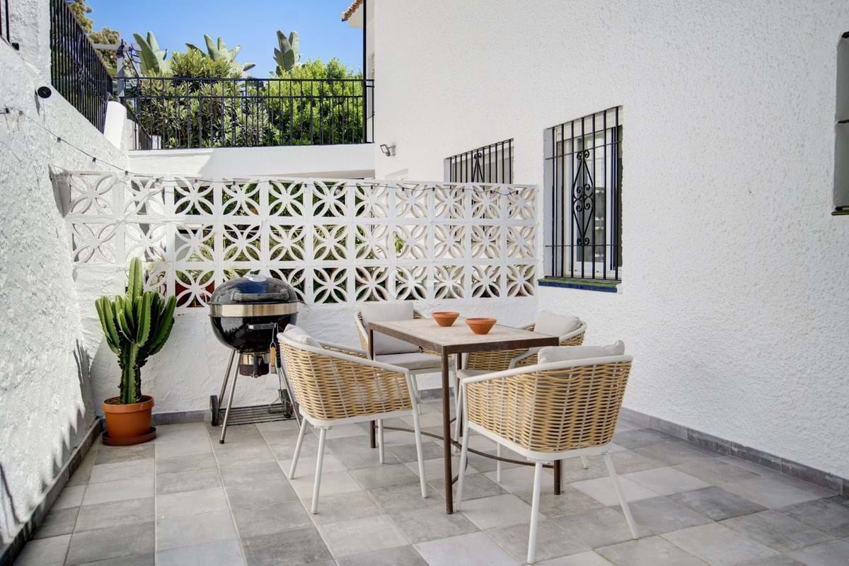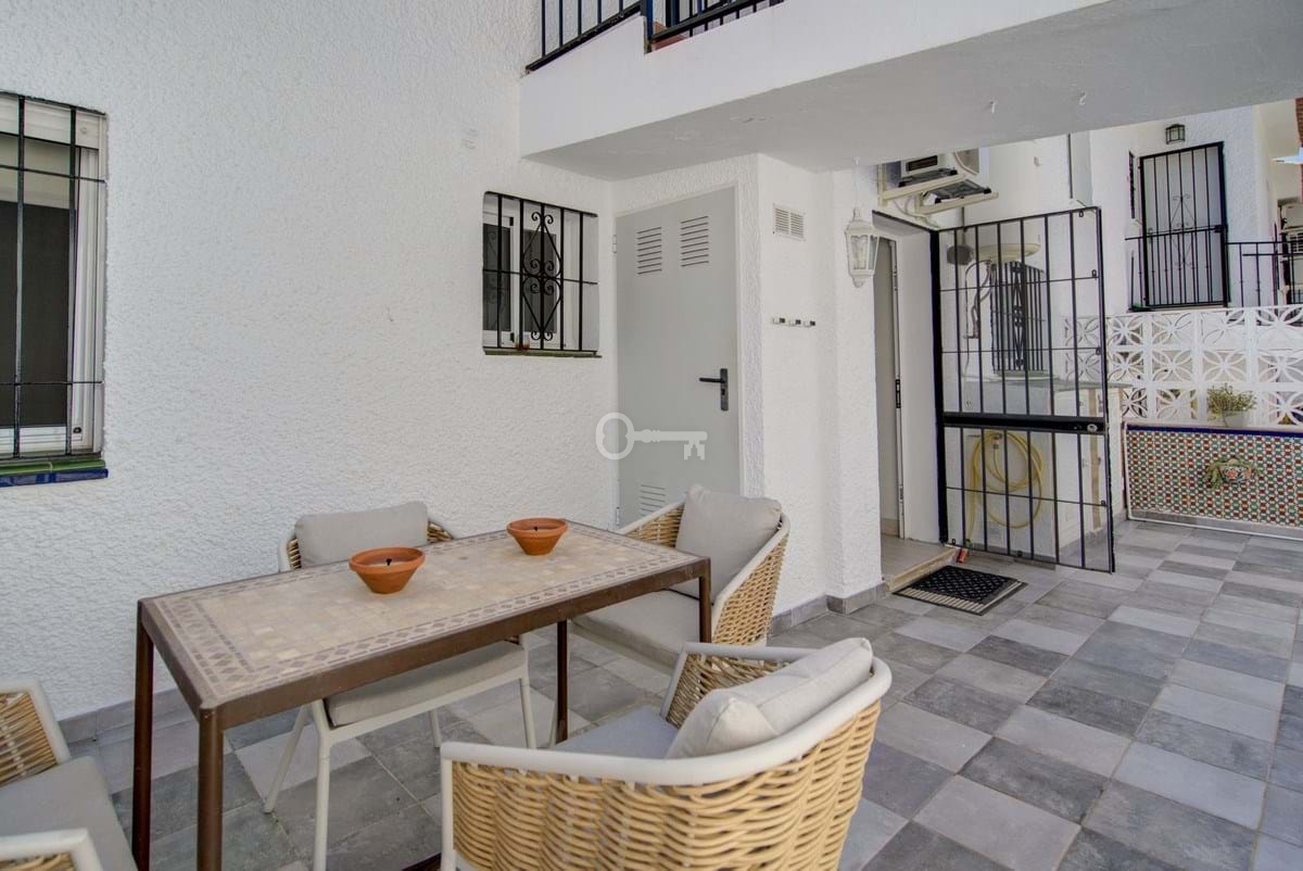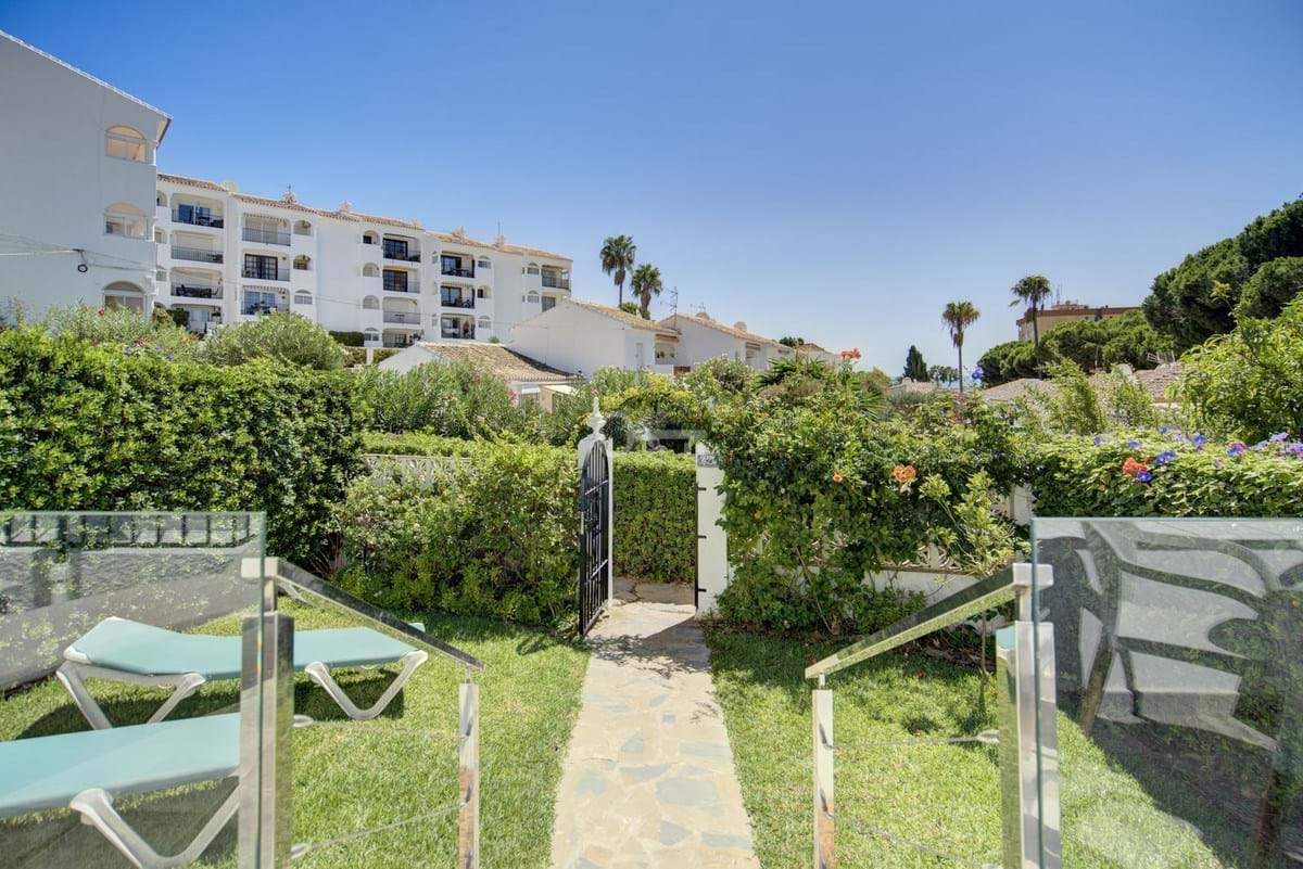 Apartment for sale in the Las Adelfas residential area in La Cala de Mijas, close to all kinds of shops, the sea and the A7 motorway, but in a very quiet residential area. This is a renovated ground floor flat, ready to move into, with a magnificent front terrace overlooking the sea, a private garden and a large back patio of around 20 m², perfect for barbecues, family gatherings and relaxing outdoors.