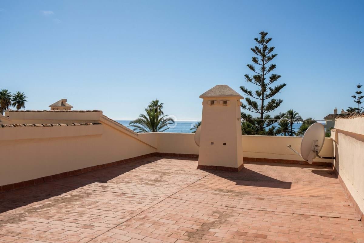 This apartment is situated in a prestigious, gated first-line beach community with extensive, beautifully maintained gardens. It enjoys lovely views of the sea and the surrounding greenery. The south-facing orientation provides plenty of natural light, and the balcony is a perfect spot to relax and enjoy the view. Inside, a cozy fireplace adds a welcoming touch. The community offers excellent facilities, including a tennis court, a paddle court, a social club, and two swimming pools.