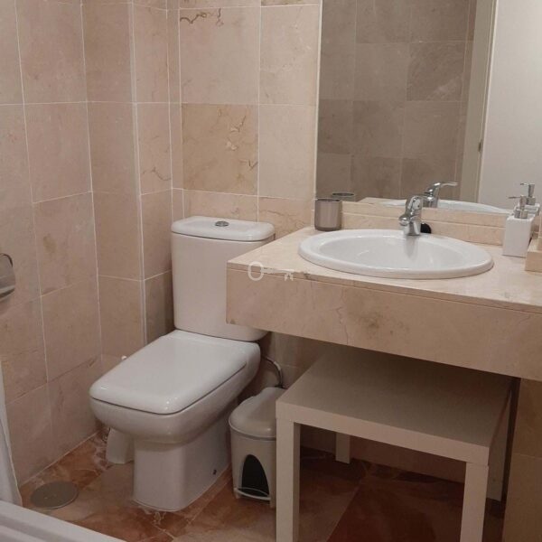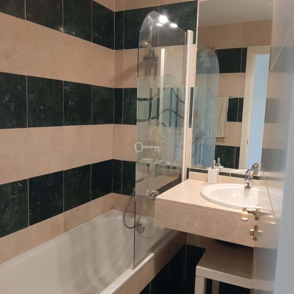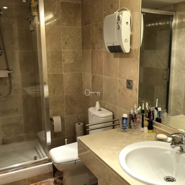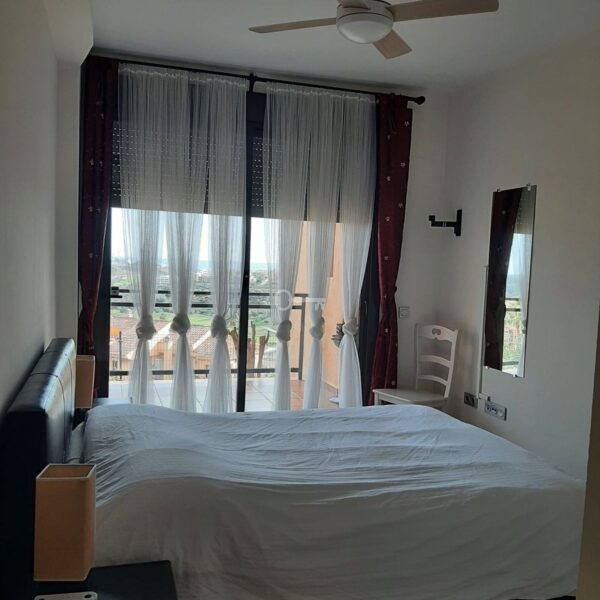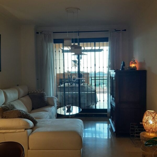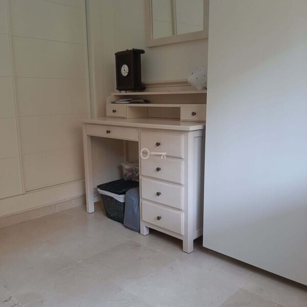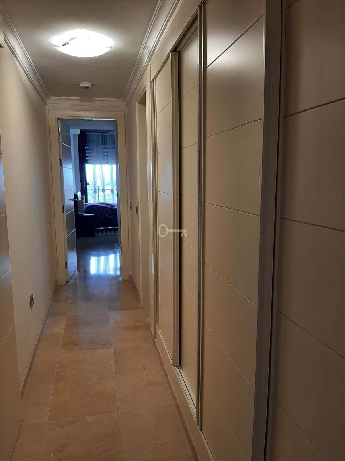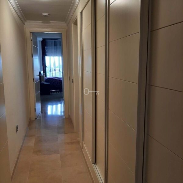 Elevated ground floor apartment with fantastic sea views. 2 beds and 2 baths (one of them en suite) located in the luxurious front line golf urbanization, Calanova Sea Golf. Spacious bedrooms have large built-in wardrobe, there is also a large wardrobe in the wide hallway between the two bedrooms that separates the sleeping area from the kitchen and the living room.