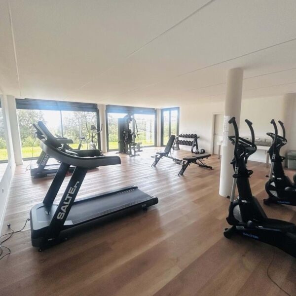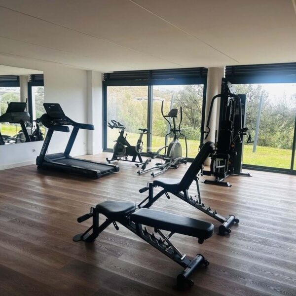 The gated community offers landscaped gardens stretching along the golf course, one communal pool, gym, sauna, jacuzzi, 4 additional exterior parking for guests and 24-hour security with surveillance cameras.