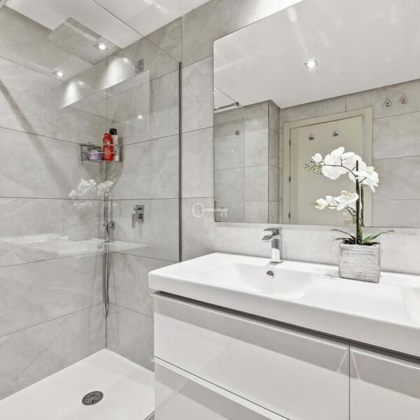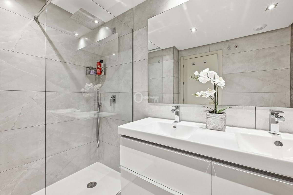 All three bedrooms are generously sized, complete with built-in wardrobes, while the two contemporary bathrooms feature elegant finishes and large walk-in showers.