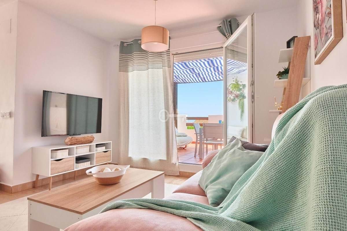 Vistalmar, La Duquesa. Beautiful apartment set within this secure and peaceful Andalusian style gated community with lush tropical gardens, four swimming pools and boasting panoramic sea and mountain views from its elevated position.