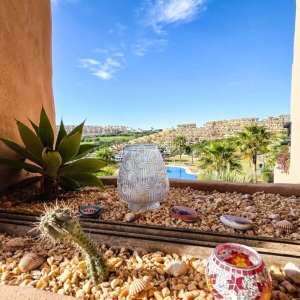 Residents benefit from a range of communal amenities, including four swimming pools, landscaped gardens, a padel court, and concierge service, all contributing to a well-maintained and welcoming community atmosphere. Its position within phase 1 is particularly desirable, offering both proximity and views that stand out within the development.