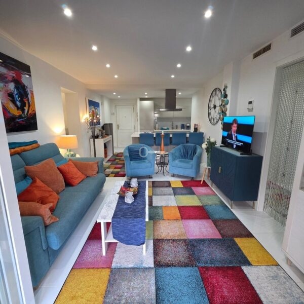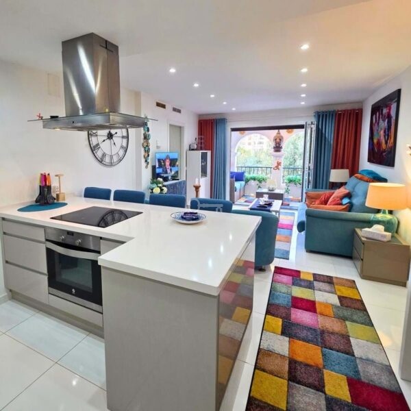 The fully renovated apartment features 3 bedrooms and 2 bathrooms, offering a comfortable and functional living space. The spacious and bright living room has two distinct areas: a sitting area and a dining area, creating an ideal space for both relaxing and enjoying time with friends and family. From here, you can access a pleasant covered terrace with partial sea views, perfect for enjoying year-round.