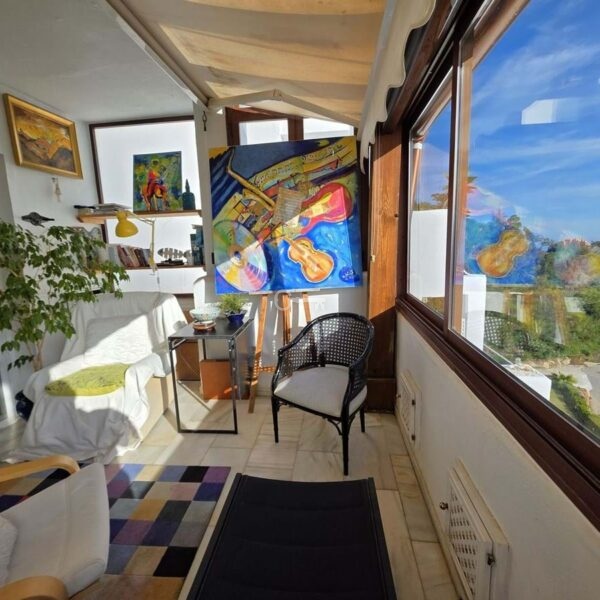 This stunning south facing apartment lies on the hills of Elviria, La Mairena and enjoys probably some of the most breath-taking views on the coast, with a panoramic vista that stretches across the Mediterranean to Gibraltar and Africa. As the best unit in this small, intimate complex, it benefits from no neighbours on the right and on the left, ensuring utmost privacy. The apartment boasts an open living and dining area, complete with a fireplace, that extends out to a sun-filled terrace with spectacular sea views stretching all the way to the coast of Morocco. Fully equipped spacious kitchen. There are 2 generous bedrooms and 2 bathrooms, including the very spacious master suite, with its beautiful bathroom, walk-in wardrobe and private a conservatory style terrace.