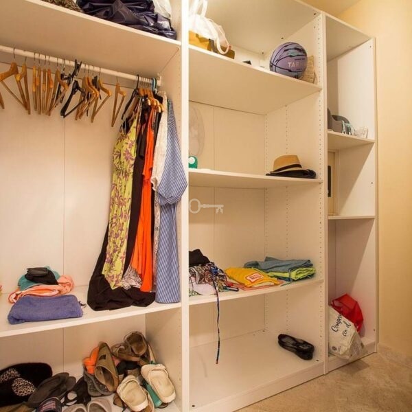 The master bedroom, generous and bright, also has direct access to the terrace. It features a dressing area as well as a large en-suite bathroom equipped with both a shower and a bathtub. The second bedroom benefits from spacious built-in wardrobes.